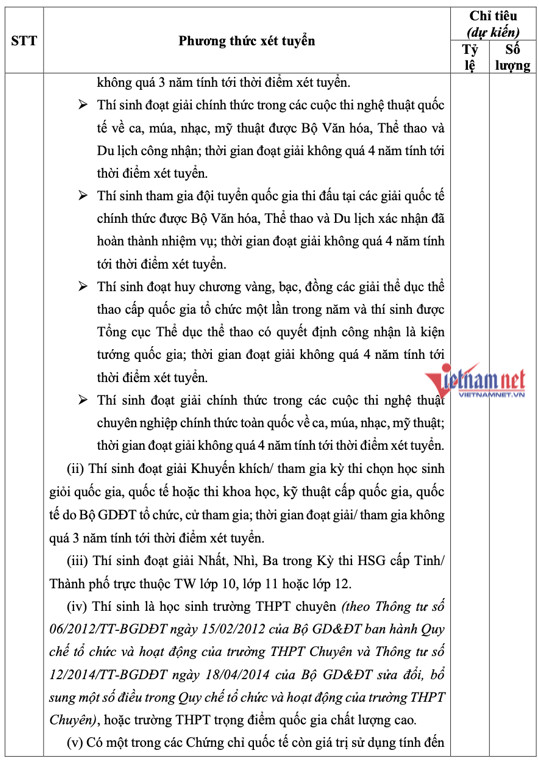 - Xét tuyển thẳng và ưu tiên xét tuyển theo quy định của Bộ GD-ĐT (dự kiến 3% tổng chỉ tiêu của mỗi ngành).