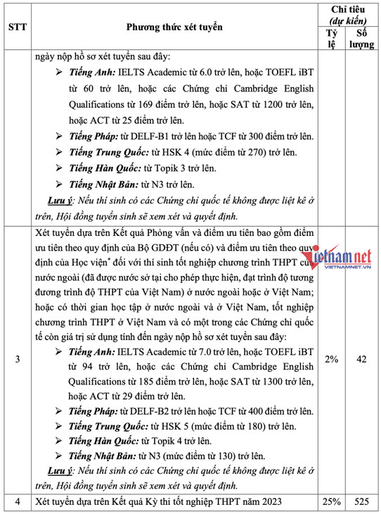 Học viện Ngoại giao dự kiến xét tuyển vào hệ đại học chính quy năm 2023 theo 4 phương thức sau: