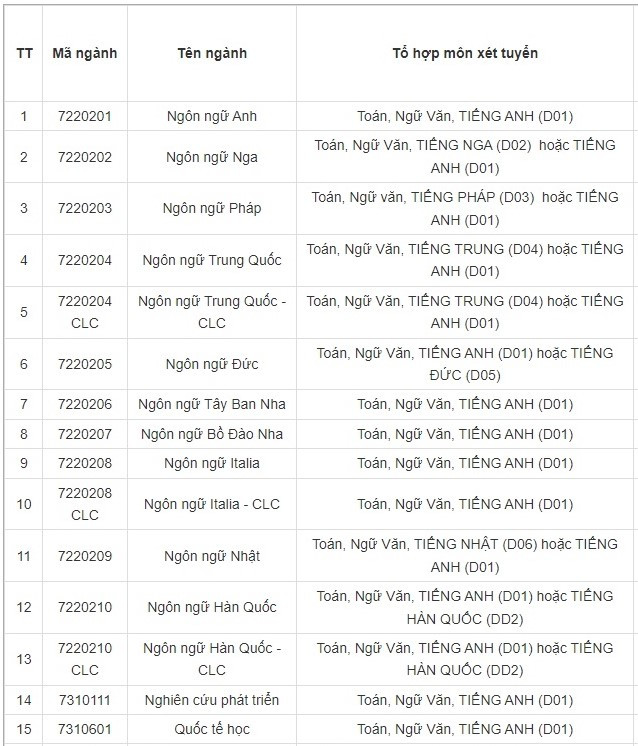 - Xét tuyển kết hợp theo quy định của Trường ĐH Hà Nội;