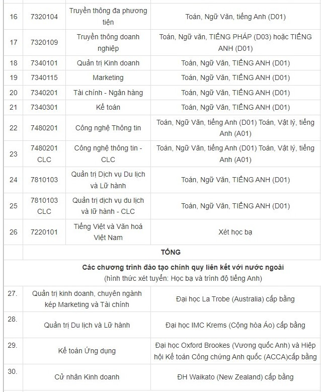 + Riêng với ngành Công nghệ thông tin, Công nghệ thông tin CLC và Truyền thông Đa phương tiện: điểm Toán + điểm Ngoại ngữ (hệ số 1) + điểm Vật lý (hoặc Ngữ văn) + điểm ưu tiên (hệ số 1).