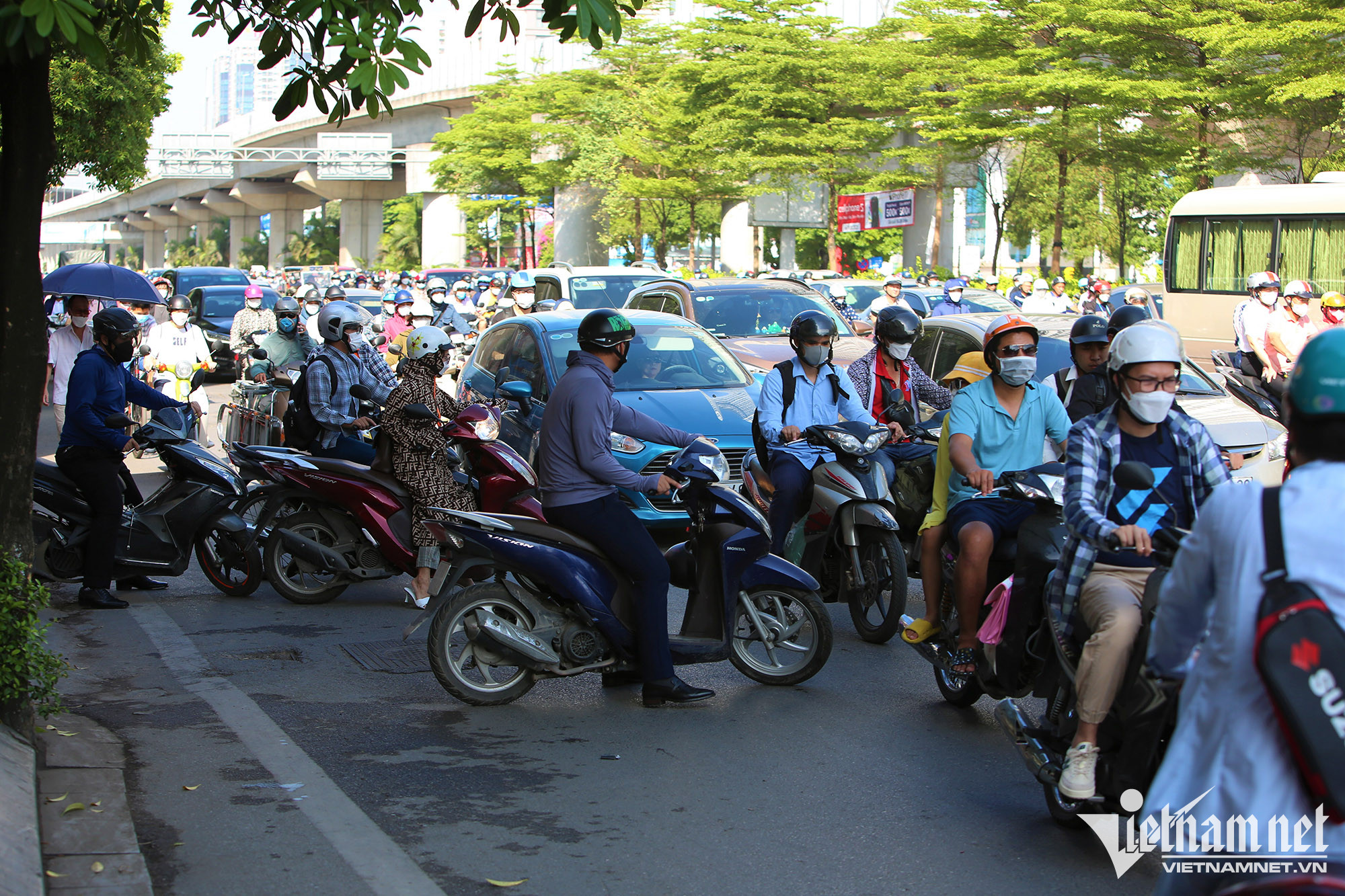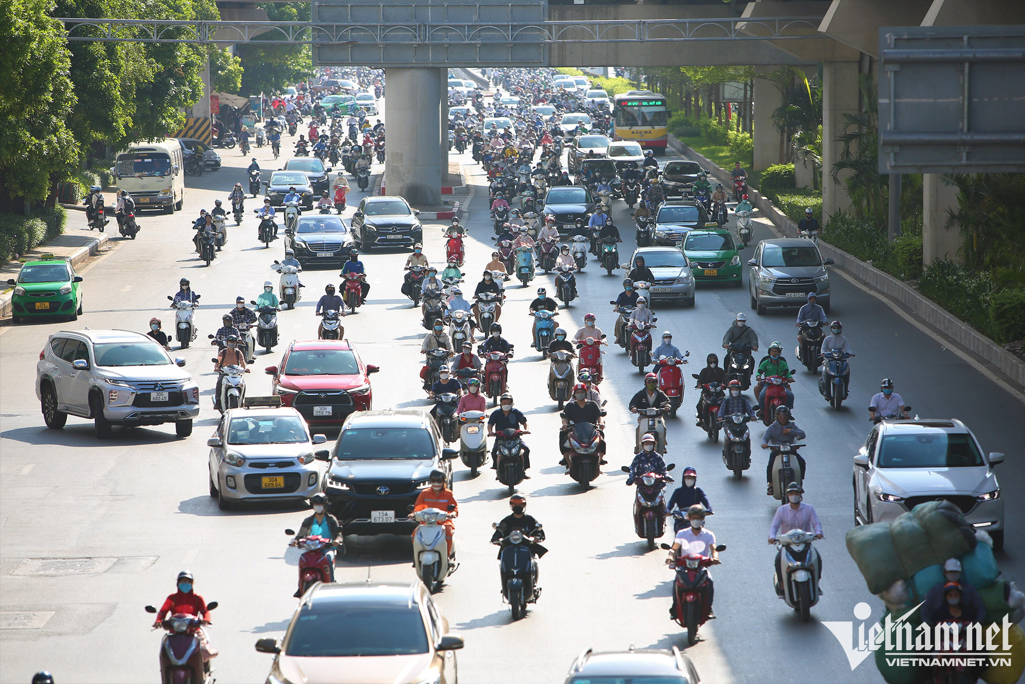 Sau đề xuất này, PV VietNamNet đã ghi nhận các phương tiện giao thông lưu thông trên tuyến với thực tế hỗn loạn, xe máy, ô tô đi chen nhau giữa các làn xe.