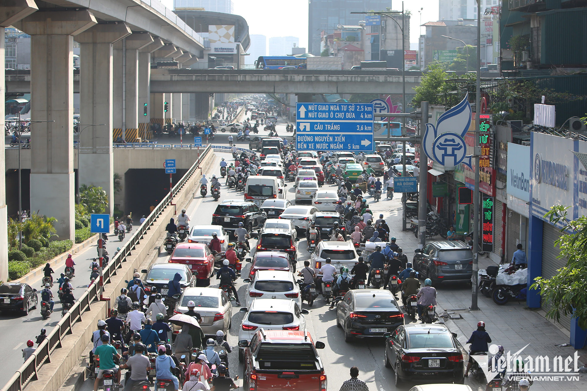 Theo ghi nhận, vào các khung giờ cao điểm sáng, chiều, đường Nguyễn Trãi (đoạn dẫn lên cầu vượt Ngã Tư Sở) thường xuyên xảy ra tình trạng ùn tắc cục bộ.