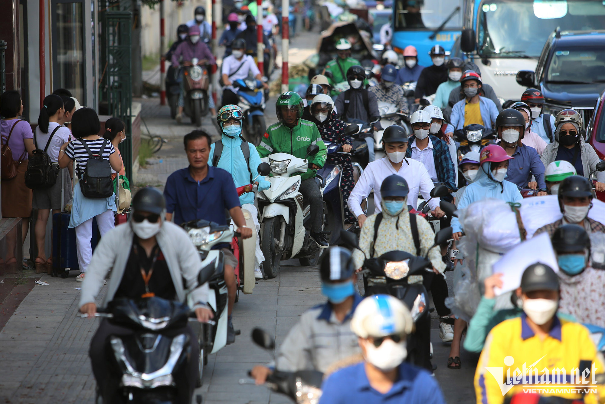 Anh Nguyễn Duy Hoàng (Thanh Xuân Trung, Thanh Xuân) cho biết, trong giờ cao điểm, có đến 4-5 làn ô tô lấn kín mặt đường, 2 làn đường trong cùng thì thường xuyên có xe buýt đi vào nên lượng lớn xe máy tràn lên vỉa hè, rất nguy hiểm.
