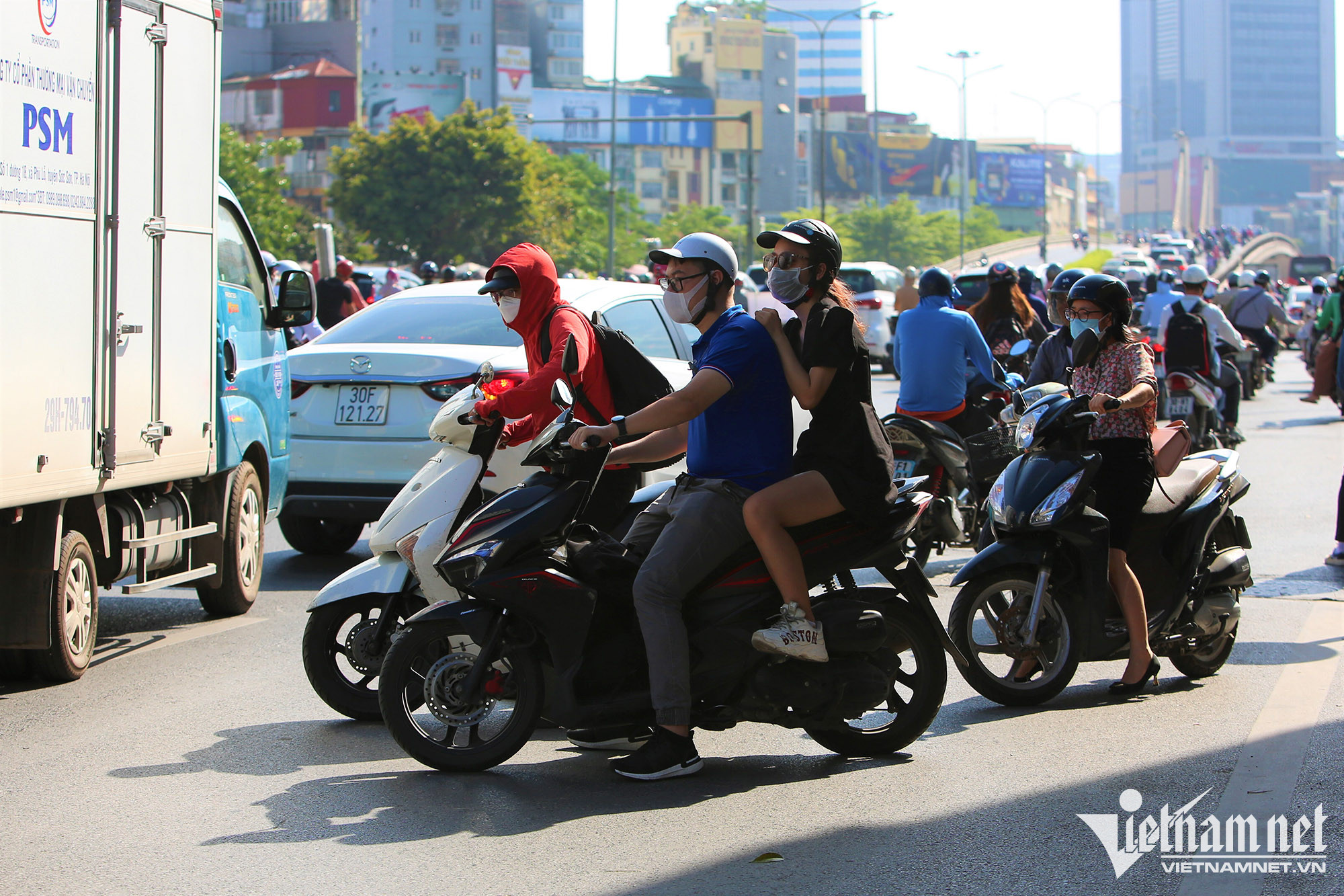 Cũng do ùn tắc ở đoạn này, nhiều ô tô cố tình lấn sang đường kế bên để thoát ùn tắc khiến xe máy phải đi theo kiểu "điền vào chỗ trống".