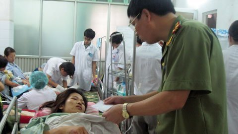 | Cơ quan công an đến chia sẻ với các nạn nhân trong vụ nổ ở tiệm vàng. |