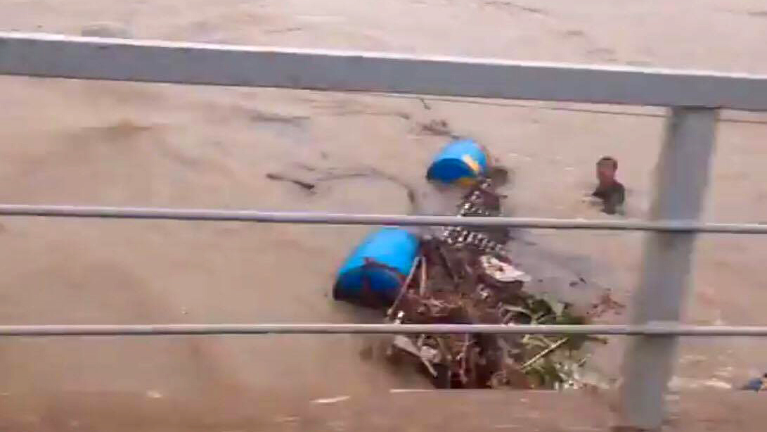 | Thời khắc ang Dũng cùng bè cá bị lũ cuốn sát mố cầu sông Bồ |