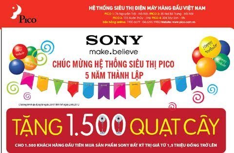 nhật hệ thống Siêu thị điện máy Pico tròn 5 tuổi, Sony tặng 1500 quạt cây cho