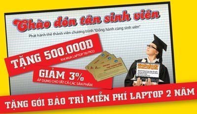Đây là chương trình “Đồng hành cùng sinh viên Việt Nam”, phối hợp cùng Hội SVVN, báo SVVN, bước đầu sẽ tặng 150.000 thẻ thành viên cho sinh viên khi mua laptop, mỗi thẻ này, các sinh viên sẽ được tặng 500.000 đồng, tặng gói bảo trì miễn phí 2 năm cho laptop, đồng thời chiết khấu 3% cho các sản phẩm khác…