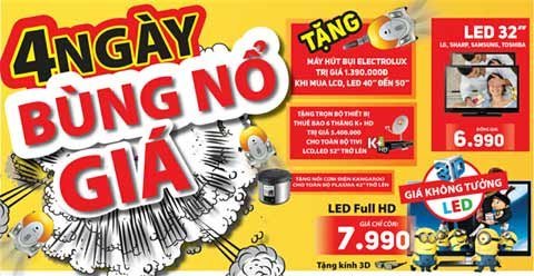 - Tặng Máy hút bụi Electrolux 1500w trị giá 1.390.000đ cho toàn bộ Tivi LCD,LED 40" đến 50".