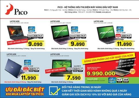 Từ ngày 1/3/2012, hệ thống siêu thị điện máy Pico phối hợp cùng Acer chính thức