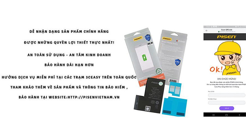 Sau khi tiến hành quét mã QR Code chống giả, người tiêu dùng sẽ được Pisen Việt Nam hỗ trợ kích hoạt gói bảo hành gia tăng lên tới 24 tháng với phụ kiện, 420 ngày với dịch vụ thay pin điện thoại.