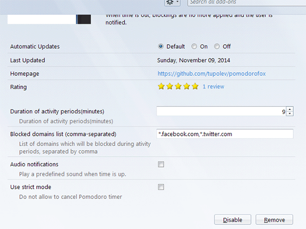 Kết luận: Dù bạn thực sự hứng thú với phương pháp Pomodoro, hoặc đơn giản chỉ muốn khóa một số website trong một khoảng thời gian nhất định để tập trung hơn vào công việc, PomodoroFox cũng là một add-on rất có ích và đáng để thử nghiệm.