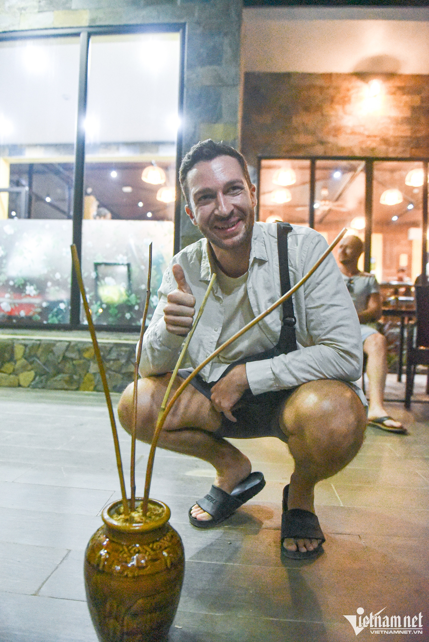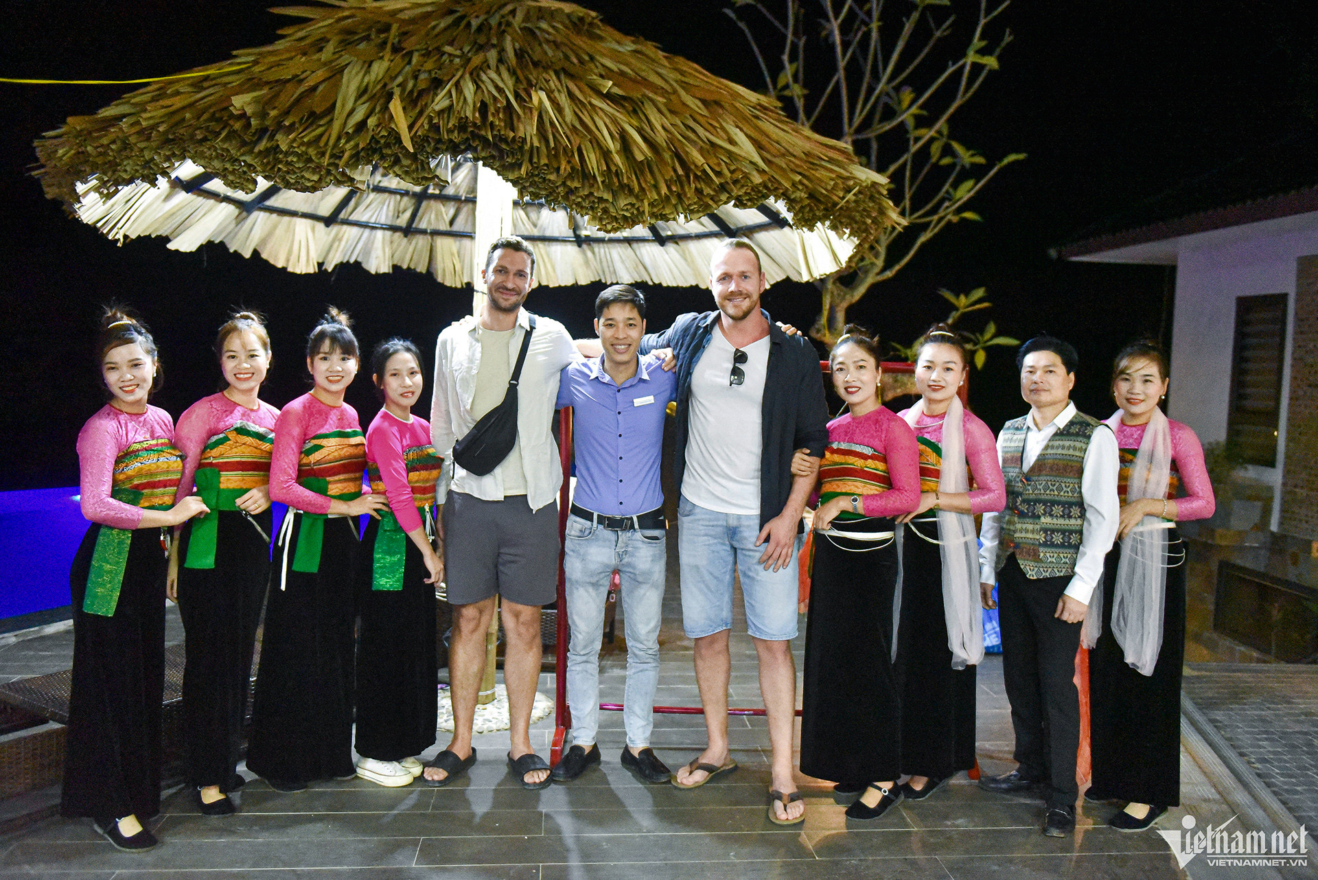 Tới Pù Luông vào dịp cuối tháng 11, du khách có cơ hội ghé thăm những vườn cam, quýt mùa thu hoach. Theo bà con, loại cam, quýt này được trồng hữu cơ nên sạch, an toàn, khi chín có vị ngọt, đậm đàTại Pù Luông có nhiều món ăn truyền thống của người dân bản địa, nổi tiếng như vịt Cổ Lũng, cá dốc, nộm rau rừng, ốc đá,... thưởng thức cùng rượu cần. Thịt vịt ở đây được người dân thả ở suối, đồng lúa, chỉ ăn ngô, lúa và rau rừng. Thịt vịt nạc, chắc và rất thơm. Khi luộc, đầu bếp không cần sử dụng bất cứ gia vị nào để khử mùi tanh. Còn với món vịt nướng sẽ được chế biến kì công, ướp với nhiều loại gia vị đặc trưng của Pù LuôngDu khách đến với Pù Luông rất thích trải nghiệm những buổi trình diễn giai điệu truyền thống của bà con dân tộc Thái. Anh Andy Decker (bên trái) và Reimund Ribarzik (bên phải) - du khách tới từ Đức hạnh phúc chia sẻ: "Những giai điệu ở đây thật tuyệt vời, nó khiến chúng tôi cảm thấy tràn đầy hứng khởi. Họ có những nhạc cụ mà tôi chưa từng thấy trước đây. Các thiếu nữ Thái xinh đẹp, khéo léo, múa uyển chuyển. Tôi cảm thấy tiếc nuối khi chỉ ở lại đây một đêm - thời gian quá ngắn để cảm nhận hết vẻ đẹp và văn hóa Pù Luông"Andy Decker thưởng thức rượu cần của bà con người Thái tại Pù LuôngHiện nay, nhiều điểm lưu trú tại Pù Luông bán combo gồm xe di chuyển khứ hồi Hà Nội - Pù Luông và phòng nghỉ giá từ 800.000 đồng/đêm/người. Ngoài ra, khách đi theo nhóm có thể thuê xe riêng trọn gói hoặc đón ôtô khách giá 300.000 đồng/người/vé khứ hồi, xe chất lượng cao hơn giá khoảng 500.000 đồngTại Pù Luông có nhiều khu nghỉ sang trọn như Central Hills Pù Luông Resort, Pù Luông Retreat, Pu Luong Eco Garden, Pu Luong Hillside Lodge... Những khu nghỉ này thường có tầm nhìn hướng ra ruộng bậc thang, có bể bơi vô cực, các tiểu cảnh check-in xinh xắn. Dạng lưu trú homestay và nhà sàn cộng đồng tập trung ở Bản Đôn và Bản Báng, có giá khoảng 100.000 - 400.000 đồng/người/đêmTừ tháng 11, nhiệt độ sáng sớm và về đêm tại Pù Luông khá lạnh, du khách nên lưu ý mang theo trang phục ấm