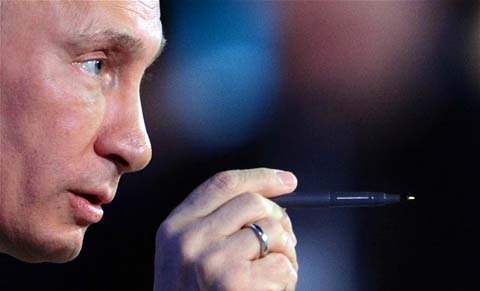 | Tổng thống Vladimir Putin tại cuộc họp báo. |