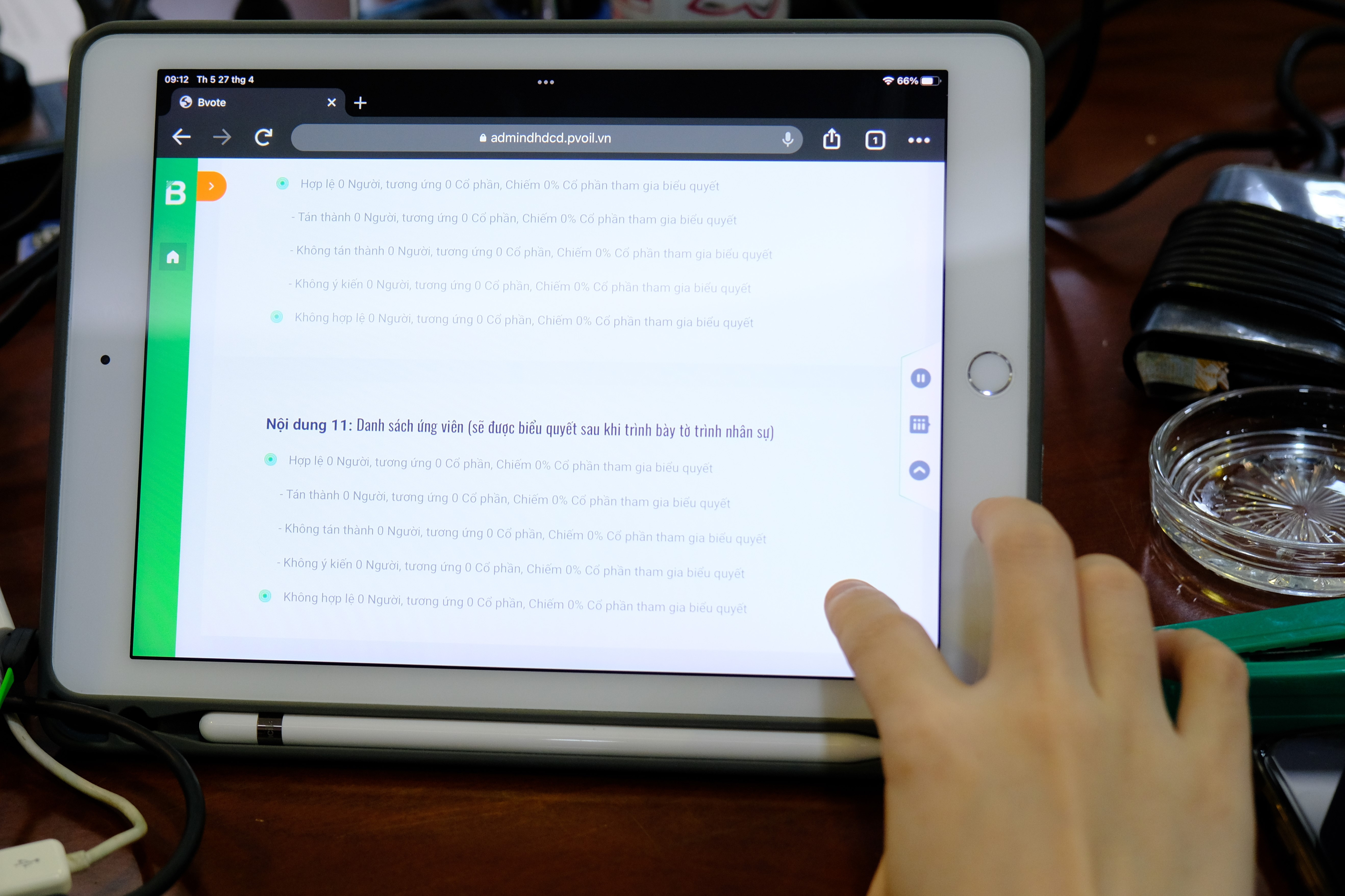Sau khi thảo luận, các cổ đông đã bỏ phiếu điện tử thông qua tất cả các báo cáo và tờ trình được trình tại Đại hội. Trong đó, ĐHĐCĐ PVOIL đã thông qua phương án phân phối lợi nhuận với việc chia cổ tức năm 2022 tỷ lệ 2%.