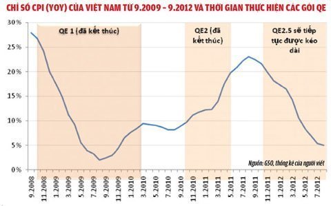 Do vậy, với việc FED tiếp tục cung tiền qua gói QE3 thì Việt Nam sẽ khó có thể tránh khỏi ảnh hưởng nhập khẩu lạm phát khi giá hàng hóa thế giới gia tăng. Tuy FED không đưa ra thời hạn cụ thể cho gói này, nhưng theo giới chuyên gia, với thể trạng tiếp tục yếu kém của nền kinh tế Mỹ như hiện nay thì QE3 chắc chắn sẽ được duy trì trong suốt năm 2013 và có thể lâu hơn.