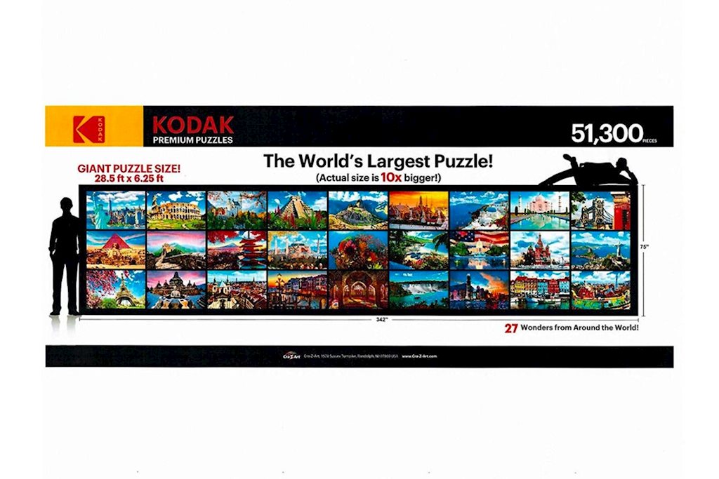 Các nhân viên của Kodak hẳn phải rất buồn chán vì dịch bệnh, vì thế họ nghĩ rằng mọi người cũng vậy. Đó là lý do tại sao công ty quyết định công bố thứ mà họ gọi là câu đố lớn nhất thế giới: một bộ ghép hình gồm 51.300 mảnh, khi hoàn thành, có kích thước chiều dài 28,5 feet (gần 8,7 mét) và chiều rộng 6,25 feet (gần 2 mét) - có thể bằng mặt sàn của một căn hộ ở Manhattan.
