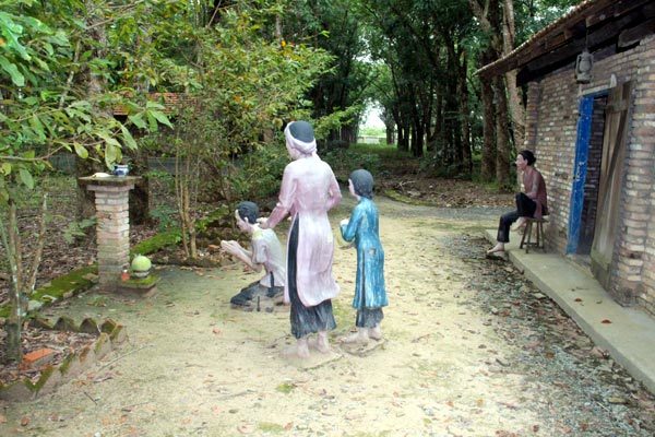 Làng rộng khoảng 5ha có tường cao bao bọc. Bên trong là cảnh trí sinh hoạt của một ngôi làng giữa những cây cao su đã có gần 100 năm tuổi.