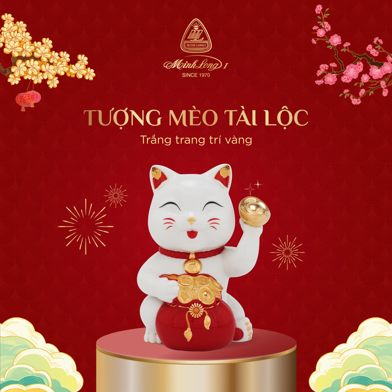 Mèo Tài Lộc cũng mang thân hình đầy đặn, thế ngồi vững chãi, vẻ mặt vui tươi. Tay trái tượng có thỏi vàng, tay phải ôm túi vàng, gửi lời chúc năm mới được mùa, sung túc cả năm. Hành động giơ thỏi vàng cũng gợi nhắc về hình ảnh chú mèo chiêu tài, thích hợp làm quà tặng cho đối tác kinh doanh.