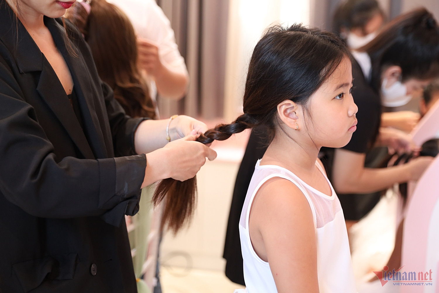 Các bé Mộc Nhiên, An Nhiên và Phúc Nhiên mặc váy trắng được cha mua ở Mỹ. Hai bé trai Hạo Nhiên và Tuấn Nhiên mặc sơ mi trắng đồng điệu.