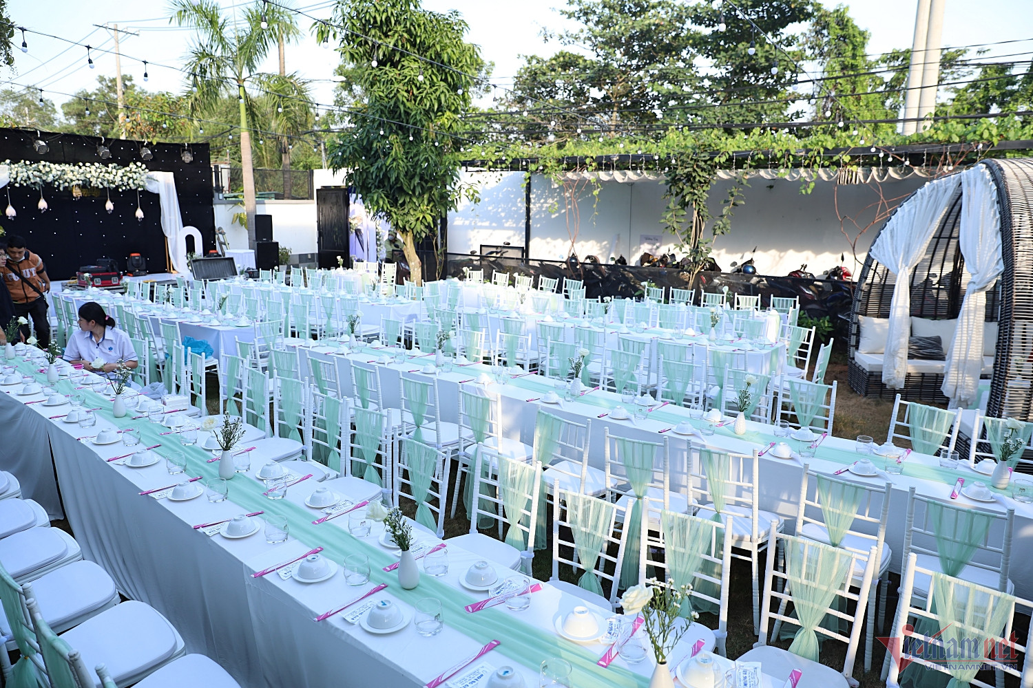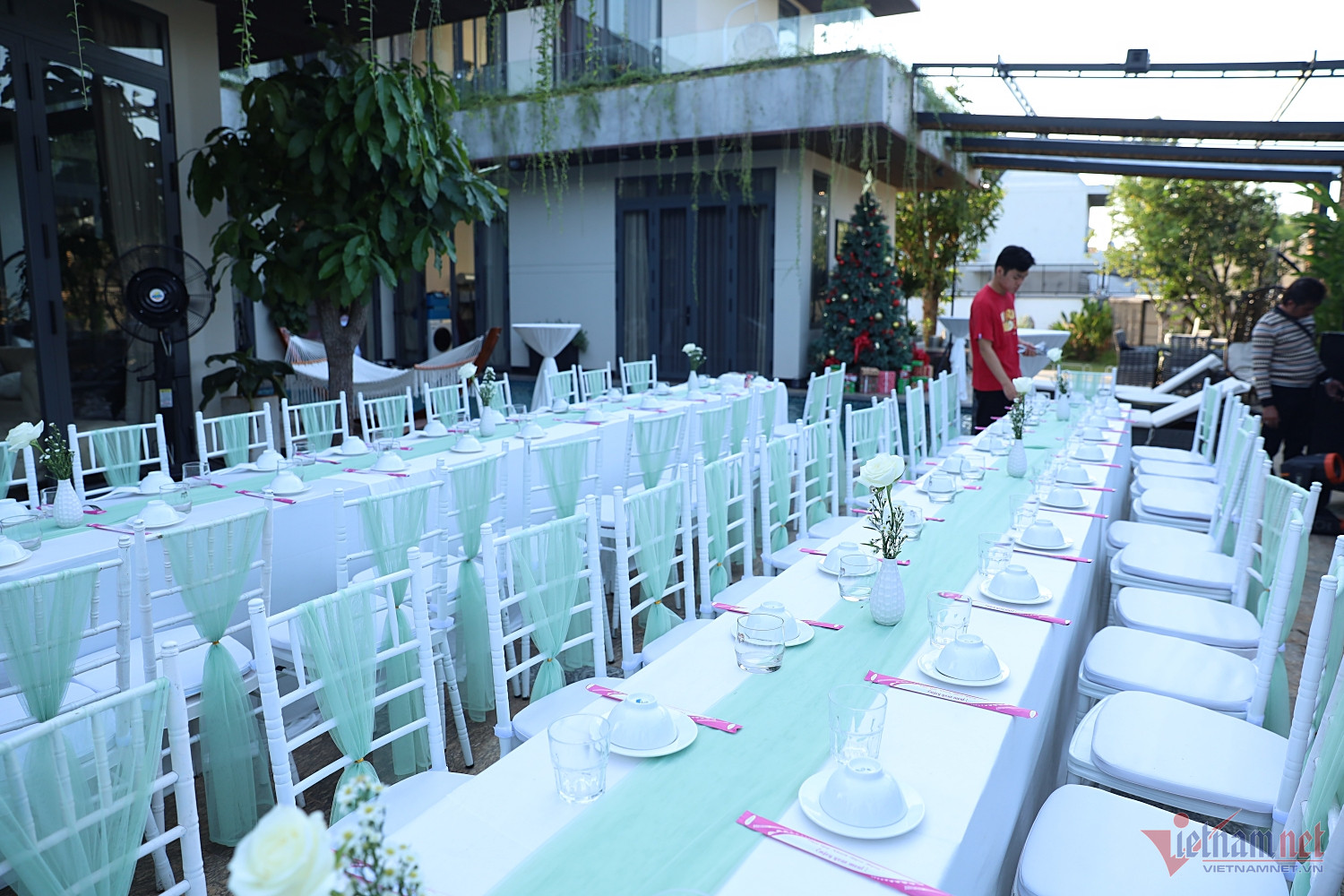 Quách Thành Danh bày tiệc tại sân vườn cho khoảng 200 khách với yêu cầu trang phục tông đen - trắng. Anh từng nói xây cơ ngơi này vì bà xã muốn tổ chức đám cưới tại nhà.