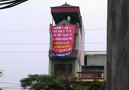 | Màn đòi nợ bằng 3 tấm pa nô “khủng” |