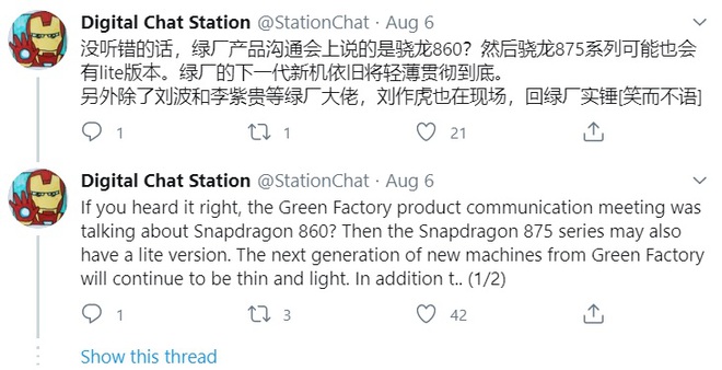 Bên cạnh đó, thời điểm cuối năm nay sẽ là thời điểm mà Qualcomm công bố con chip Snapdragon 875G mới, được cho là xây dựng trên tiến trình 5nm cho hiệu năng được cải thiện hơn nữa, đồng thời vẫn tiết kiệm điện năng. Và giống như Snapdragon 865 hiện tại, Snapdragon 875G cũng sẽ có phiên bản cắt giảm hiệu năng.