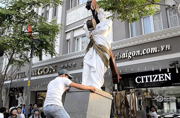 5 bức tượng của khách sạn 4 sao nằm trên phố đi bộ Nguyễn Huệ lấn chiếm vỉa hè bị phó chủ tịch UBND quận 1 Đoàn Ngọc Hải yêu cầu xử lý