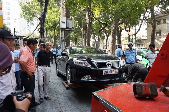 Nửa đêm quận 1 cẩu xe biển ngoại giao chiếm vỉa hè