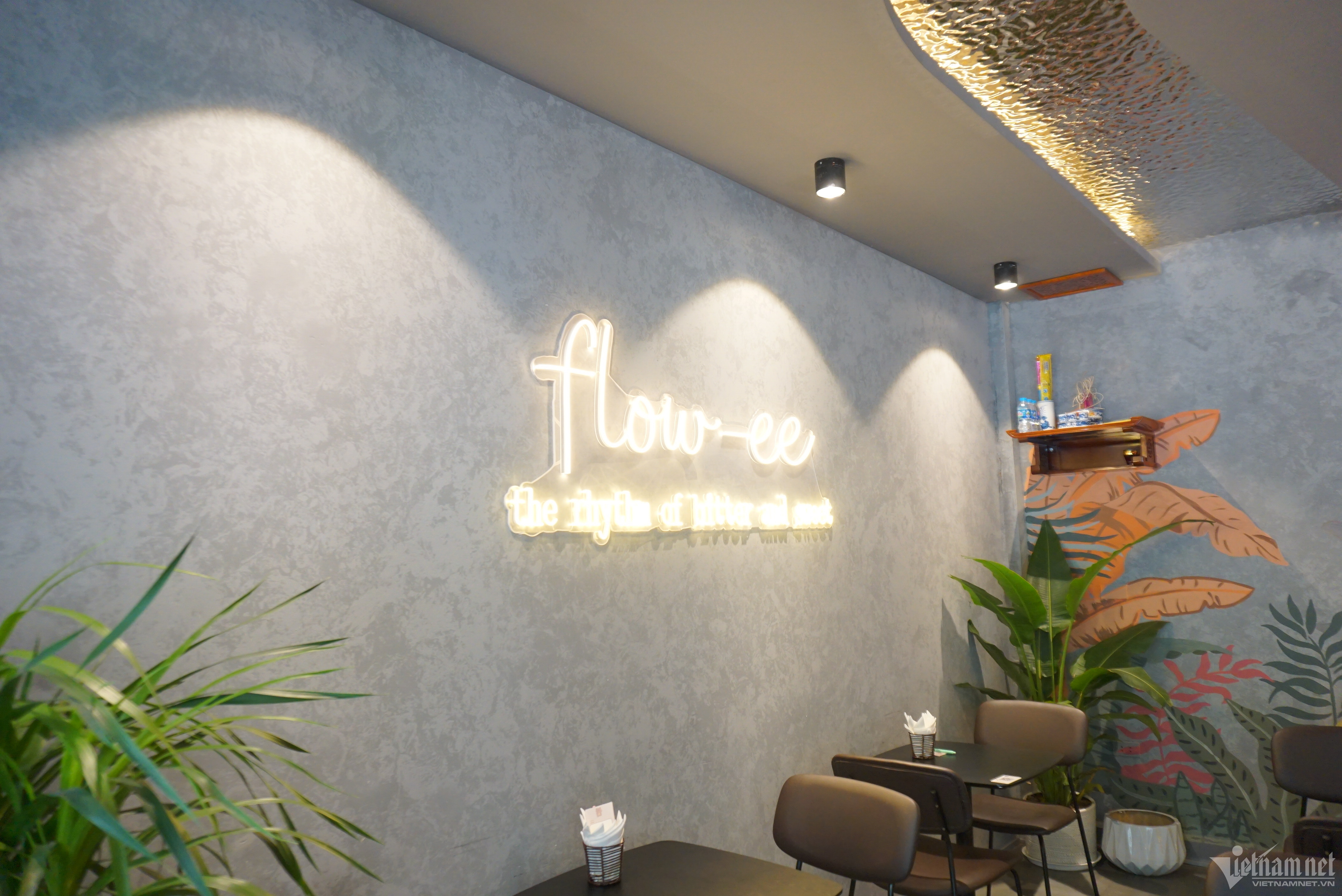Cái tên Flow-ee có nghĩa là dòng chảy. Dòng chảy của nước, của thời gian, của âm nhạc, hay của cuộc sống. Mọi thứ đều sẽ có nốt thăng, nốt trầm, lúc lên, lúc xuống. Nếu như cuộc sống đã bắt những người khuyết tật phải đối diện với rất nhiều khó khăn, thì cũng sẽ có những cơ hội khác được trao đến, để họ có thể tìm thấy những niềm vui và những âm thanh của riêng mình. Hoà nhịp cùng với cái tên, màu sắc chủ đạo của quán là màu xám và vàng. Màu xám thể hiện cho những góc trầm khuất, còn màu vàng thể hiện cho sự tươi vui và hy vọng.