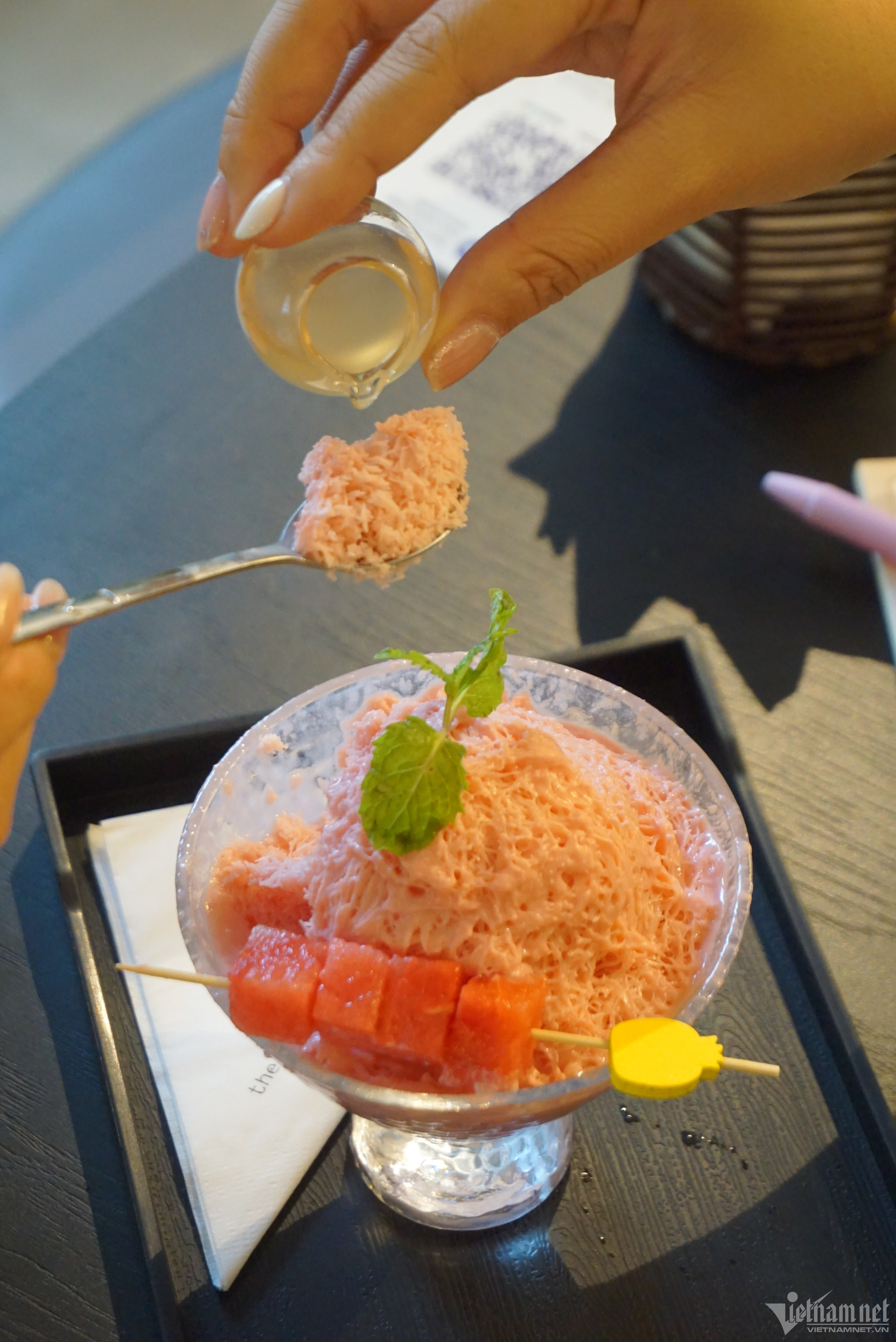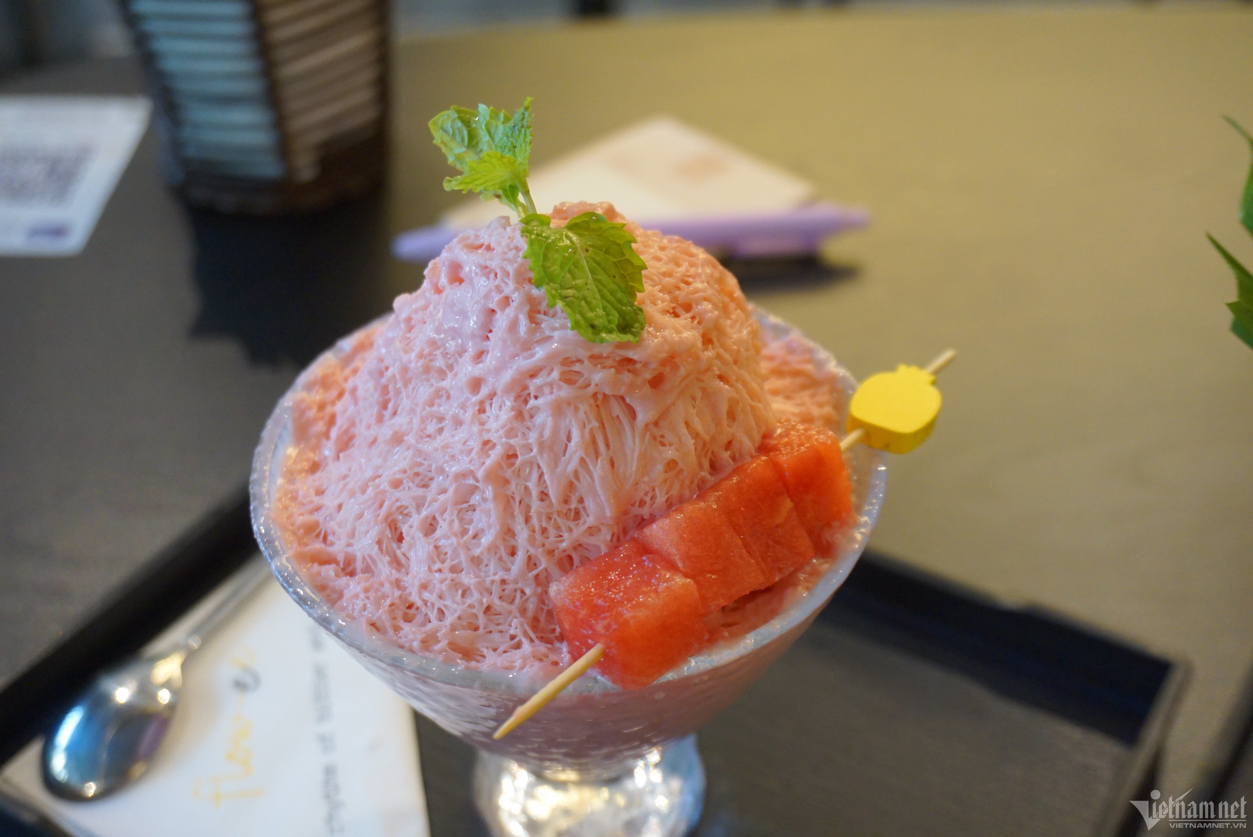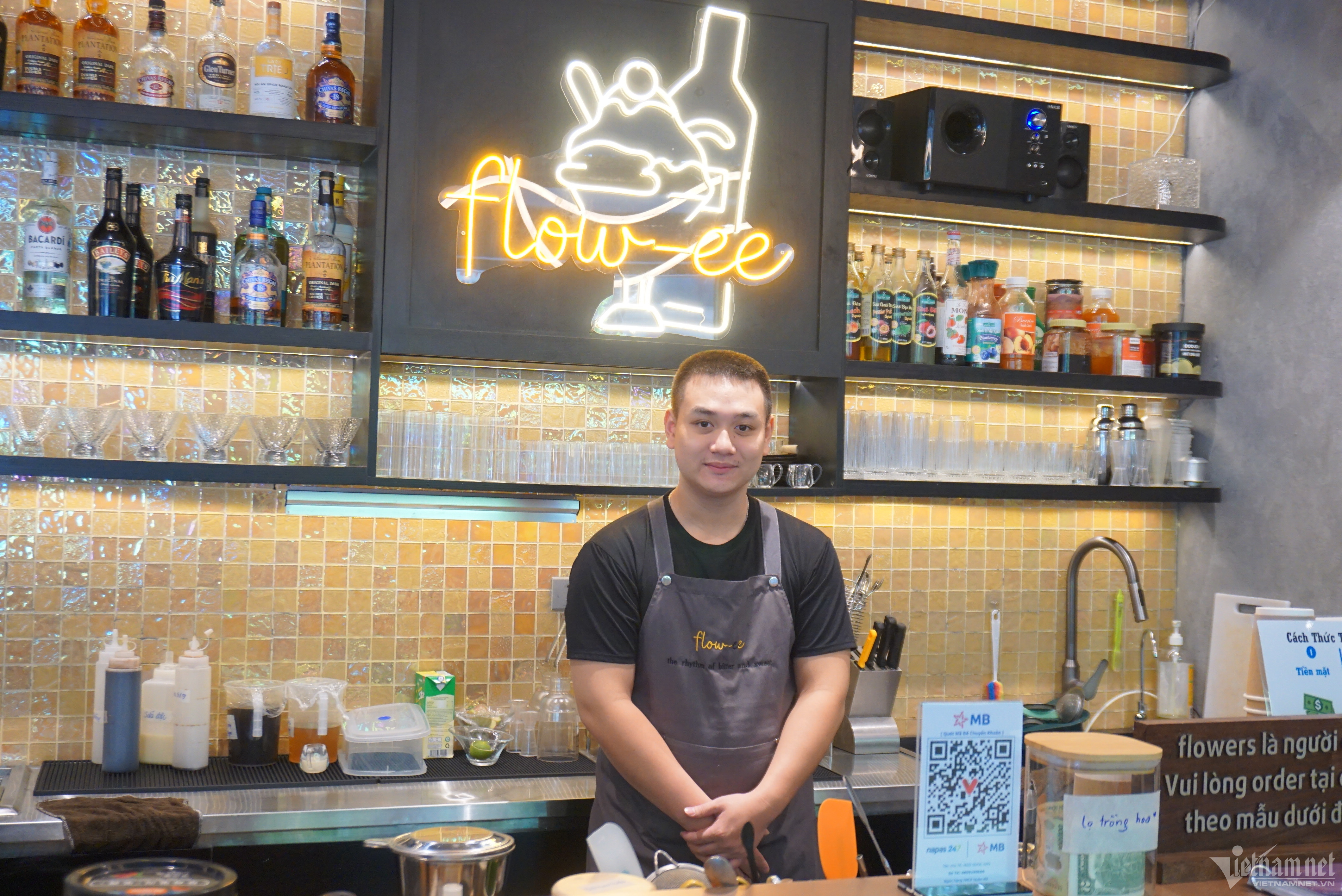 Trong ánh đèn vàng ấm áp, những nhân viên của quán cà phê Flow-ee đang chăm chú làm việc. Dưới những bàn tay khéo léo nhanh nhẹn, món bingsu rượu – món “tủ” của quán đã sẵn sàng để phục vụ khách hàng.
