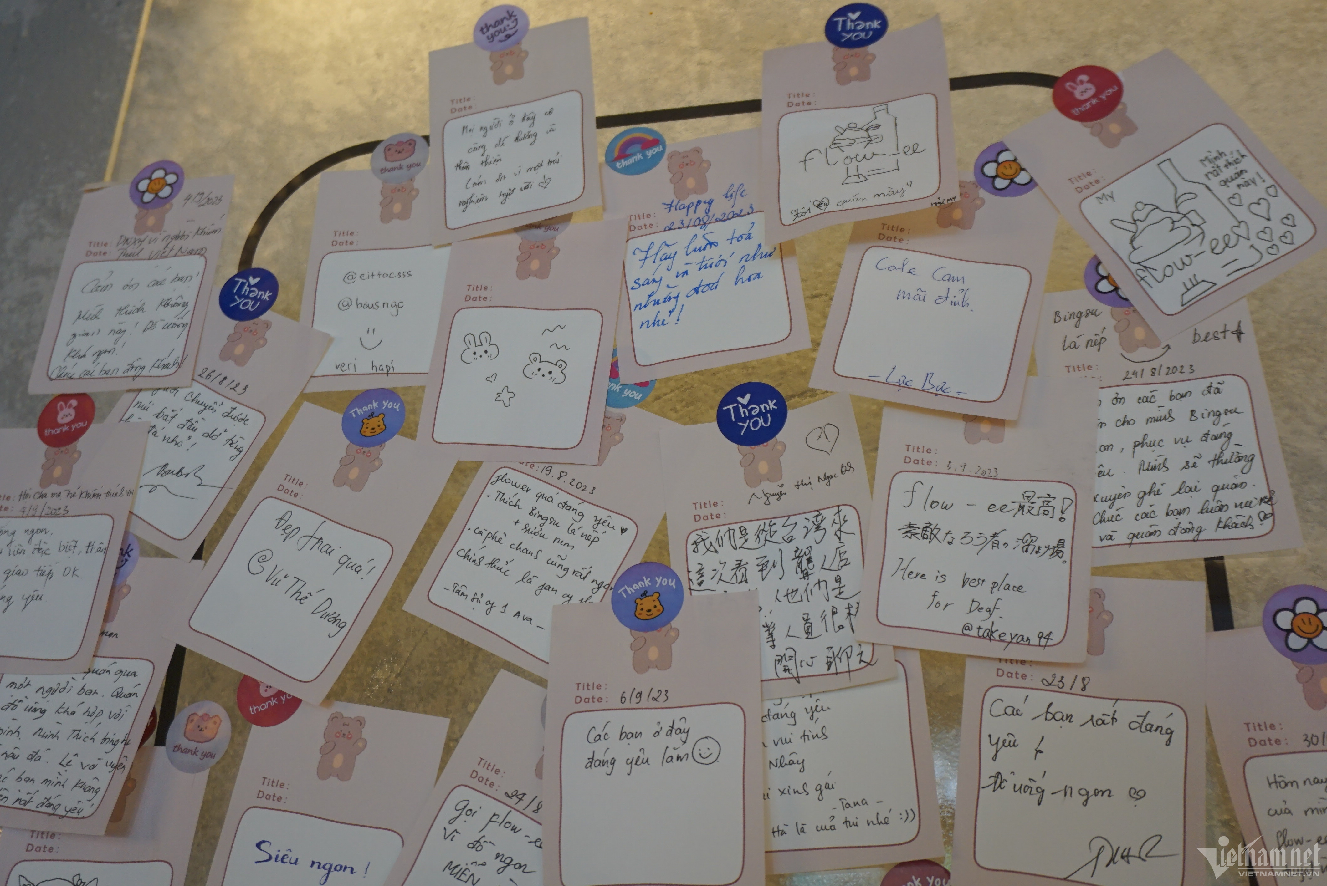 Không phụ sự cố gắng của cả nhóm và các bạn nhân viên, sau hơn một tháng hoạt động, Flow-ee giờ đã trở thành địa điểm yêu thích của nhiều vị khách. Trên tấm bảng treo ở quán, những tờ giấy nhắn được ghim ngày một nhiều. Trong đó là những cảm nhận, sự yêu quý và động viên, khích lệ của các khách hàng gửi gắm đến quán. Từng dòng chữ đầy dễ thương không chỉ mang đến niềm vui mà còn trở thành động lực để các thành viên cố gắng mỗi ngày.