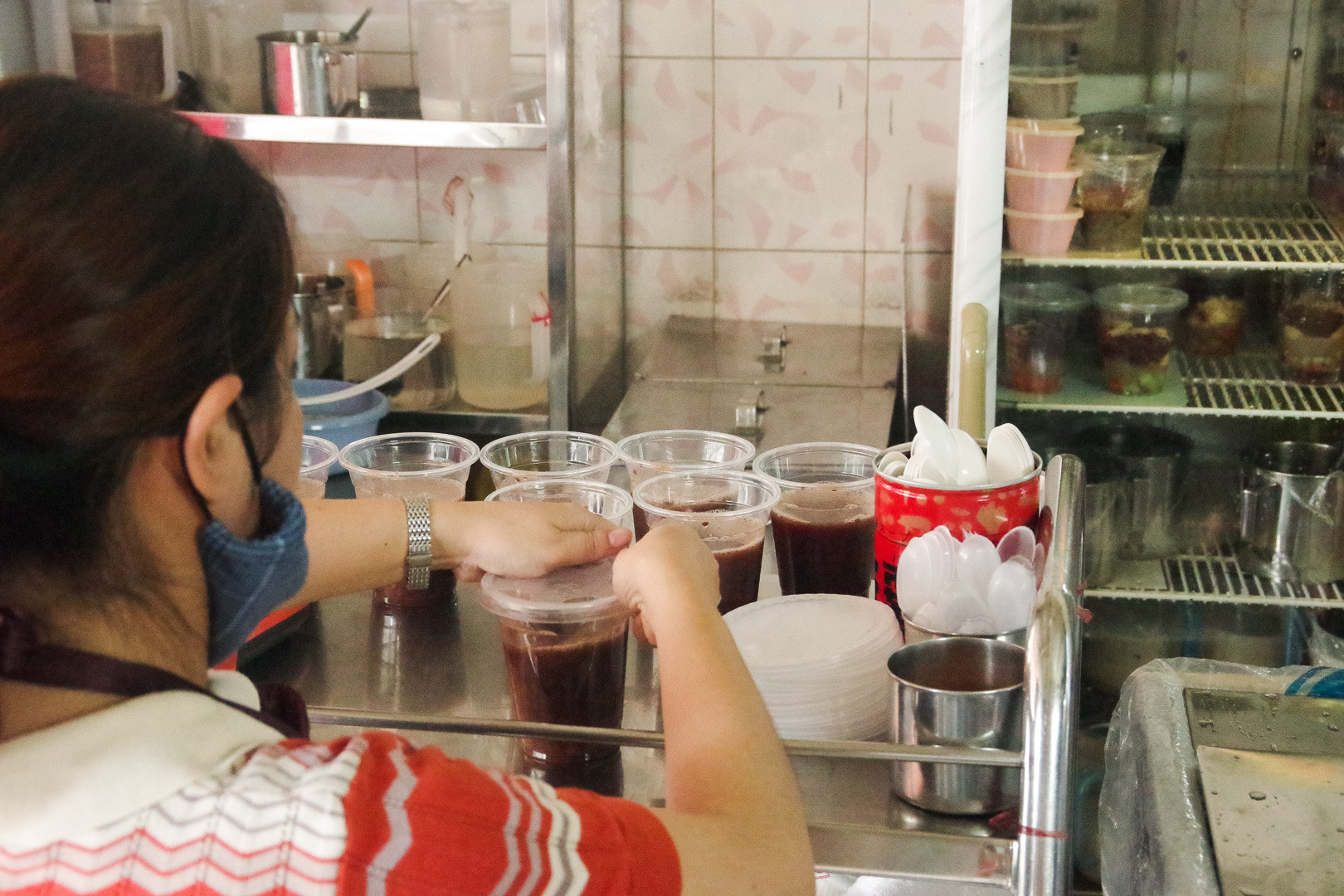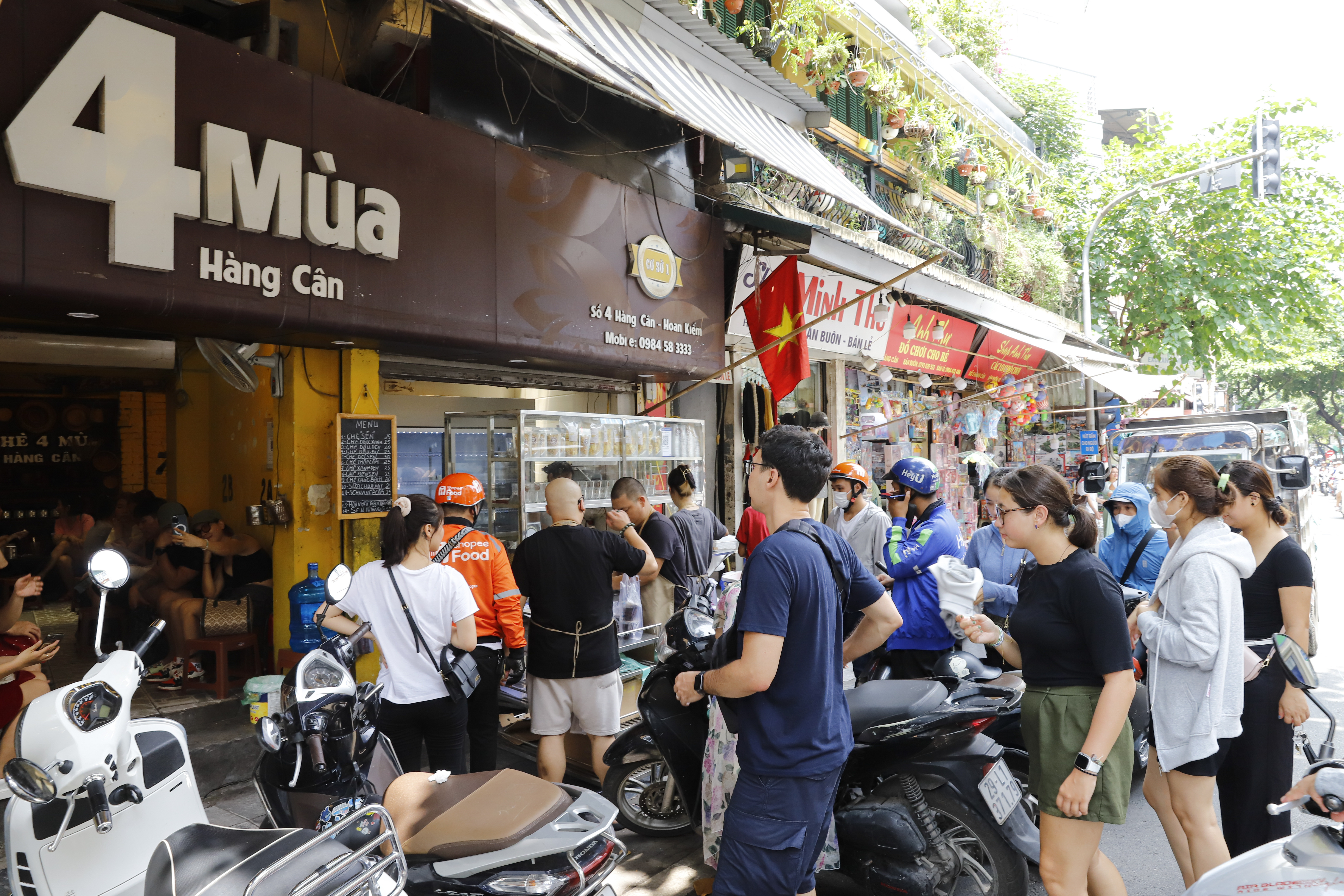 Khung giờ sáng sớm, trưa và tan tầm ngày 22/8, các quán chè nổi tiếng tại khu vực phố cổ đều chật cứng thực khách và người giao hàng. Sản phẩm "cháy hàng" nhất là các món có nguyên liệu đậu đỏ.