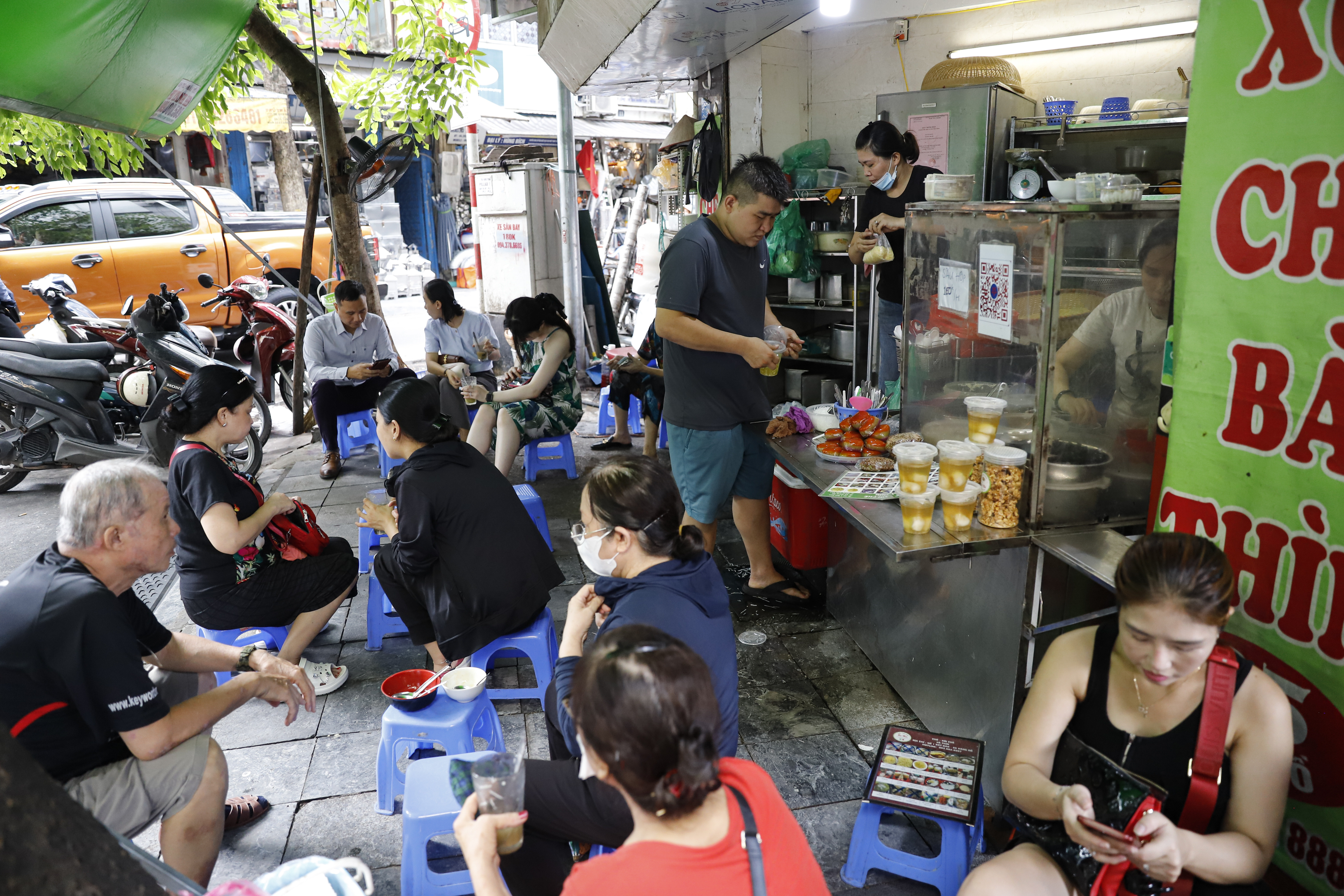 Quán chè bà Thìn ở phố Bát Đàn cũng đông kín khách thưởng thức. Nhiều người đặt hàng chục cốc chè đậu đỏ từ cửa hàng nổi tiếng này.