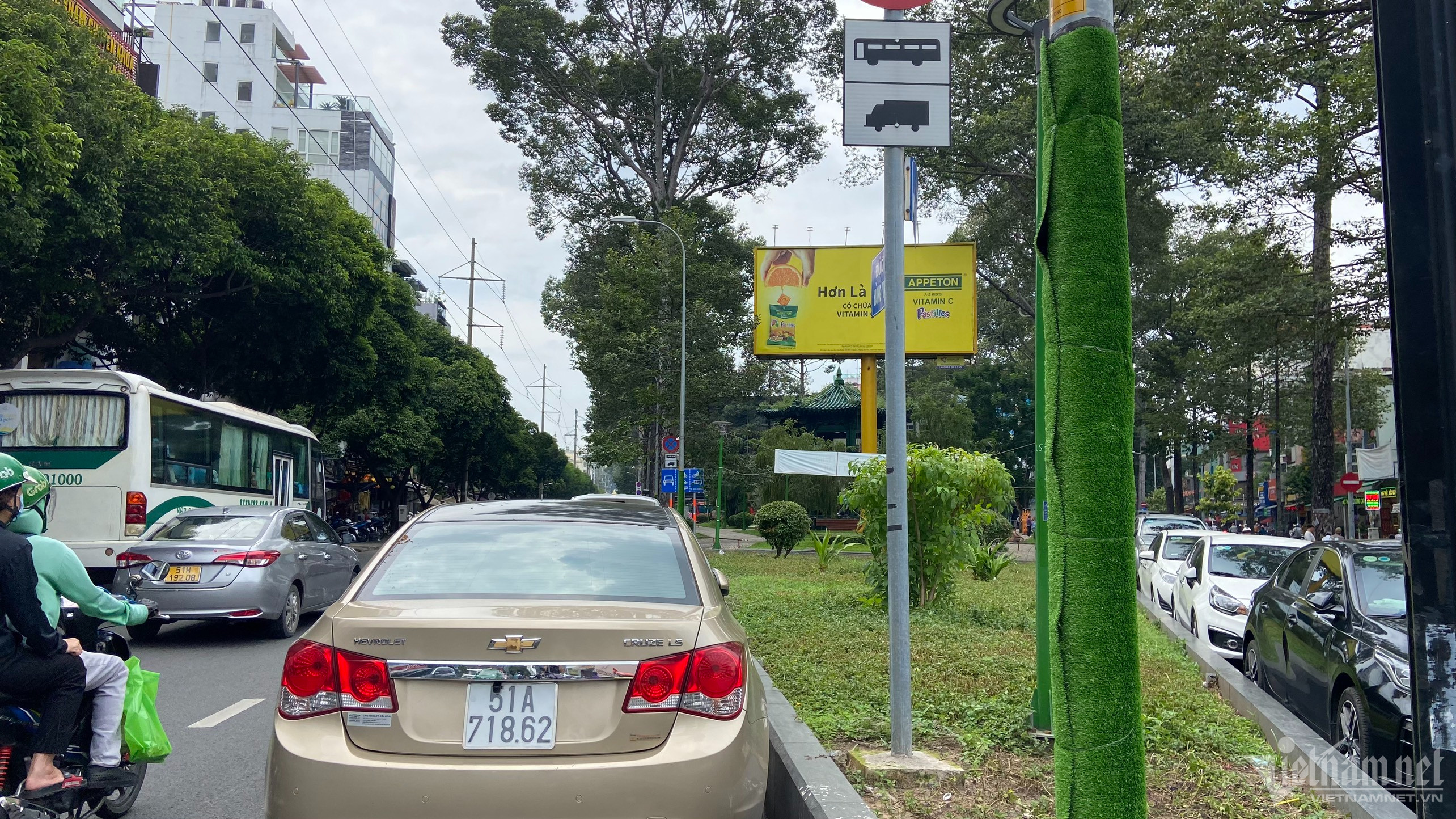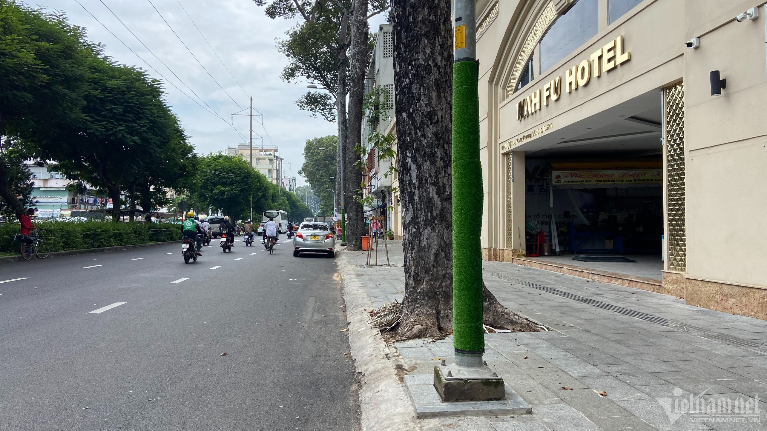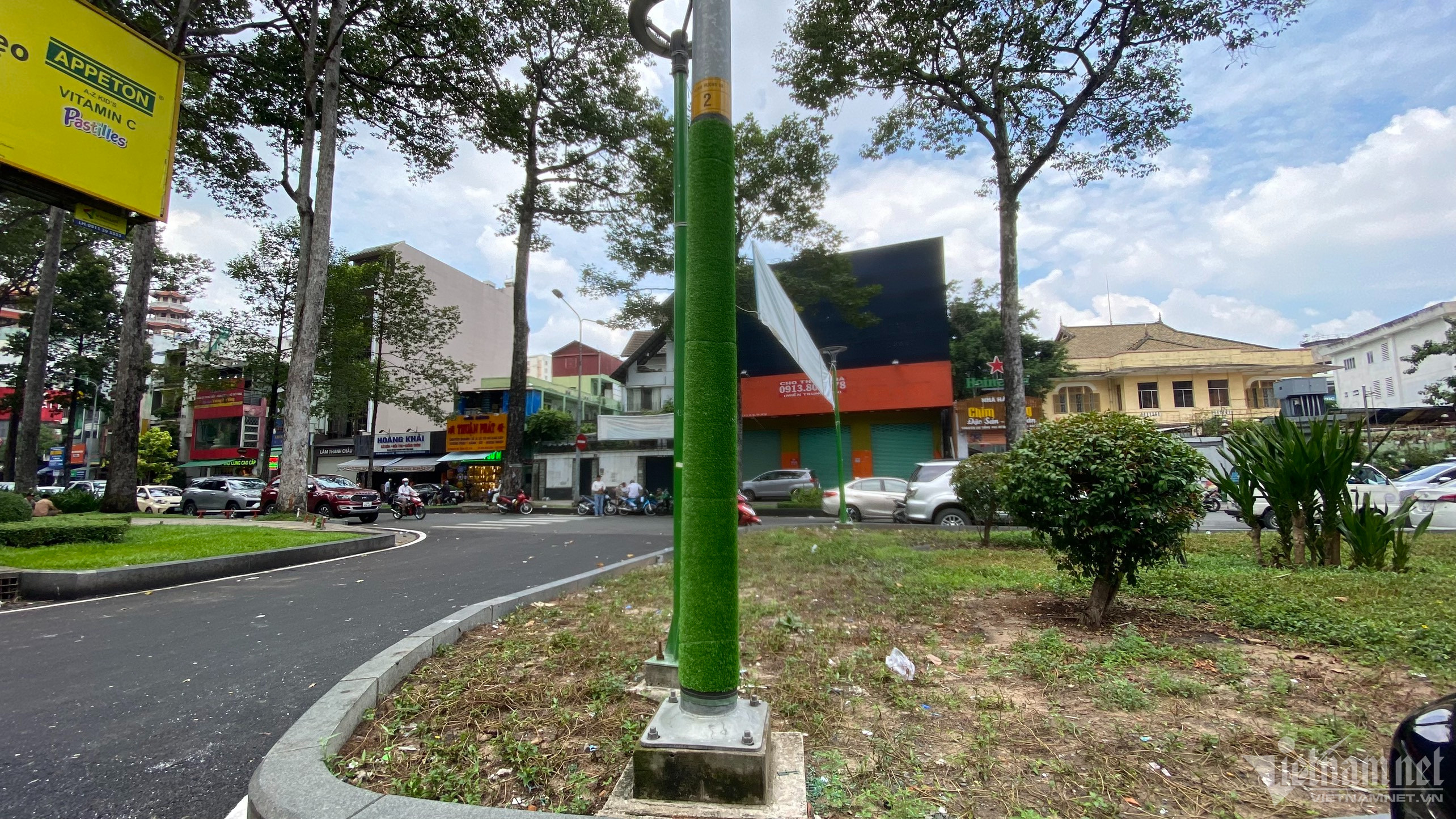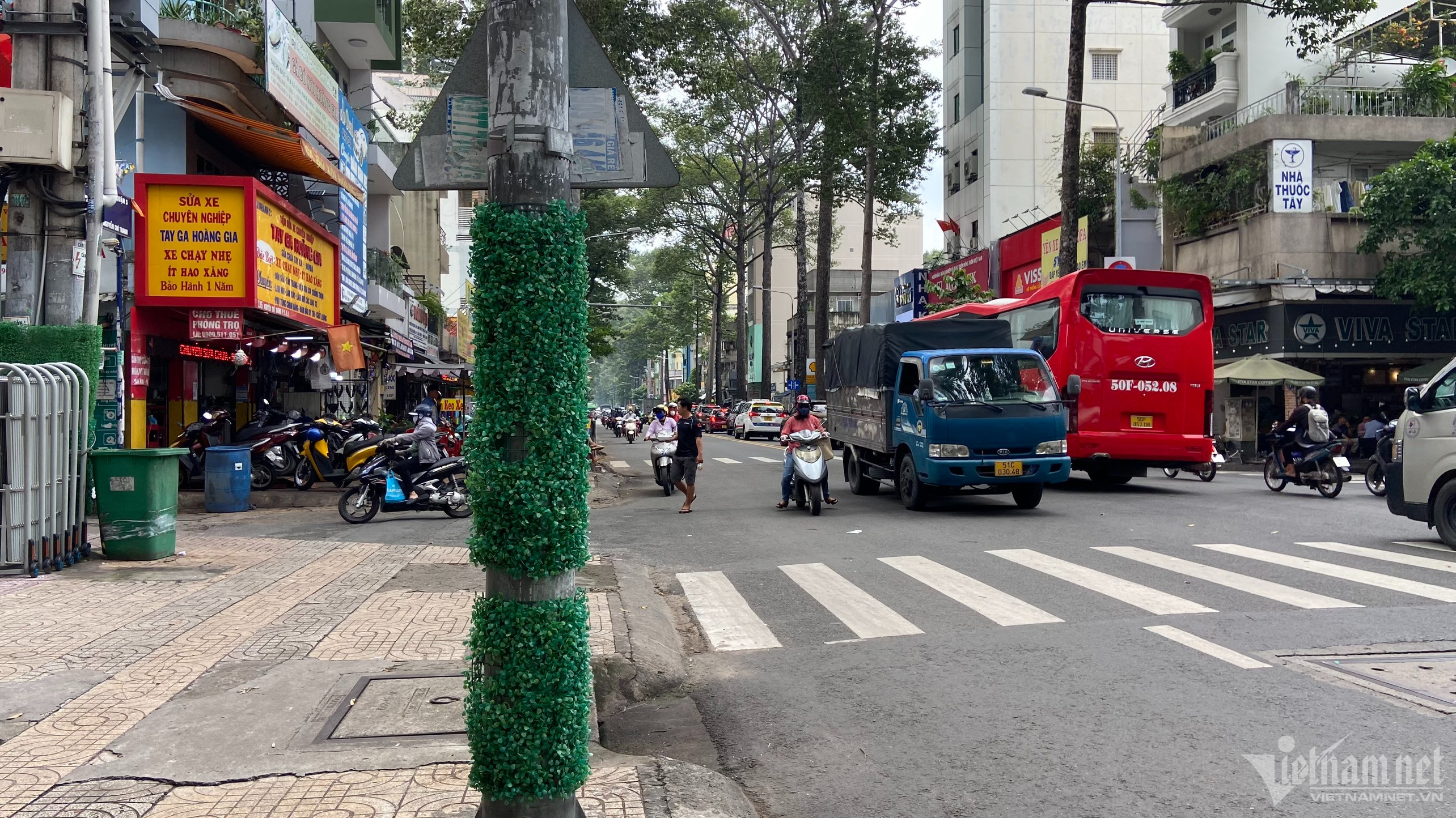 Hàng loạt tuyến đường ở trung tâm TP.HCM với nghìn trụ điện, cột đèn chiếu sáng được quấn cỏ nhựa nhằm mục đích chống dán quảng cáo rao vặt.