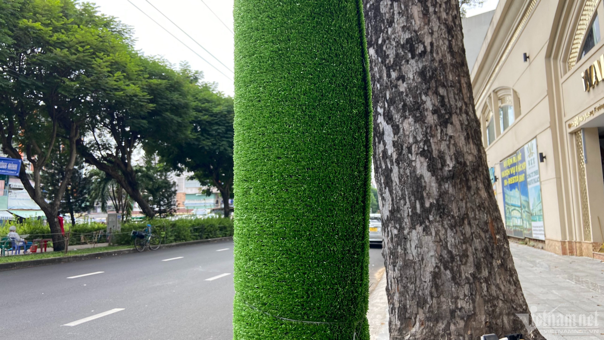 Thời gian gần đây, hàng nghìn trụ điện, cột đèn chiếu sáng theo dọc các tuyến đường thuộc quận 5 (TP.HCM) như Trần Nhân Tôn, Nguyễn Duy Dương, Trần Hưng Đạo, Nguyễn Trãi, Huỳnh Mẫn Đạt, Nguyễn Kim, Nguyễn Tri Phương... được quấn thảm cỏ nhân tạo màu xanh ở phía dưới gốc lên trên ngọn.Theo quan sát, lớp cỏ nhựa cao khoảng 2-3m, được quấn tròn thân trụ điện, cột đèn chiếu sáng và được cố định bằng kẽm, thép. Qua tìm hiểu của PV VietNamNet, đây là sáng kiến mô hình chống dán quảng cáo trên cột điện do Mặt trận tổ quốc quận 5 triển khai thực hiện. Anh Hùng (người dân ngụ phường 9, quận 5) cho biết, việc quấn cỏ nhựa nhân tạo lên trụ điện, đèn chiếu sáng đã ngăn chặn được tình trạng vẽ bậy, dán quảng cáo, rao vặt gây mất mỹ quan đô thị. Đại diện MTTQ quận 5 cho biết, trước đây, mỗi lần ra quân làm sạch đẹp đường phố, ban mặt trận khu phố sẽ phải huy động nhiều nhân lực để đi cạo những bản quảng cáo, rao vặt dán sai quy định. Thời gian qua, khi triển khai mô hình quấn cỏ nhân tạo lên cột điện, trụ đèn chiếu sáng đã hạn chế đáng kể được tình trạng dán quảng cáo, rao vặt không đúng quy định. Khi áp dụng mô hình quấn cỏ nhân tạo vào trụ điện, cột đèn chiếu sáng đã đem lại hiệu quả hơn so với việc huy động nhân lực, hạn chế đáng kể được tình trạng dán quảng cáo, rao vặt không đúng quy định.Được biết, nguồn kinh phí thực hiện hoàn toàn bằng xã hội hóa, không dùng ngân sách nhà nước. Mỗi trụ điện hay cột đèn được ốp thảm cỏ, giá thành từ 130.000 - 150.000 đồng.Một số trụ điện đã bong tróc hoặc bị gỡ phần cỏMặt trận tổ quốc quận 5 cho biết thời gian tới sẽ rà soát và nếu có hư hỏng thì bổ sung thảm cỏ nhựa cho đồng bộ, không nhếch nhác.