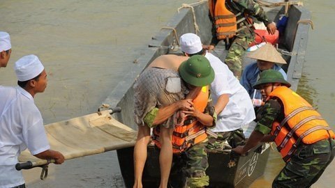 | Lữ đoàn công binh 249 diễn tập cứu hộ cứu nạn trong bão lũ tháng 8/2012. Ảnh: Minh Thăng |