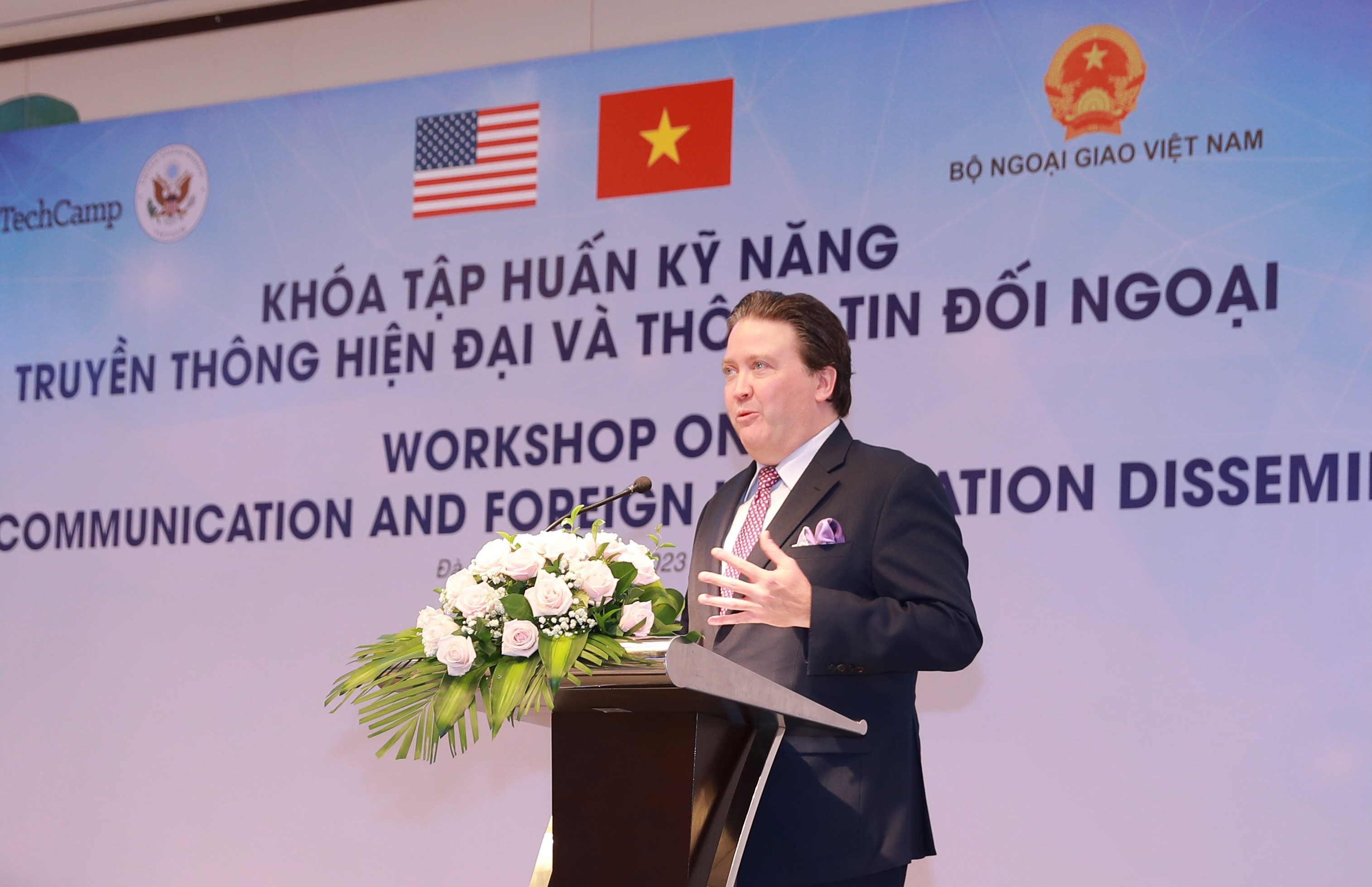 Thứ trưởng Bộ Ngoại giao Lê Thị Thu Hằng cho biết, đây là lần đầu tiên Bộ phối hợp Đại sứ quán Mỹ tổ chức chương trình tập huấn kỹ năng truyền thông. Hoạt động này còn thiết thực, ý nghĩa hơn khi hai nước kỷ niệm 10 năm thiết lập quan hệ Đối tác toàn diện (2013-2023).