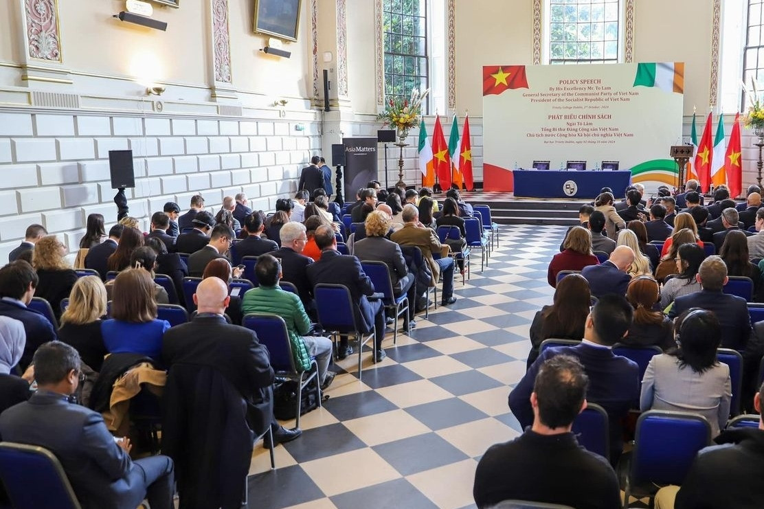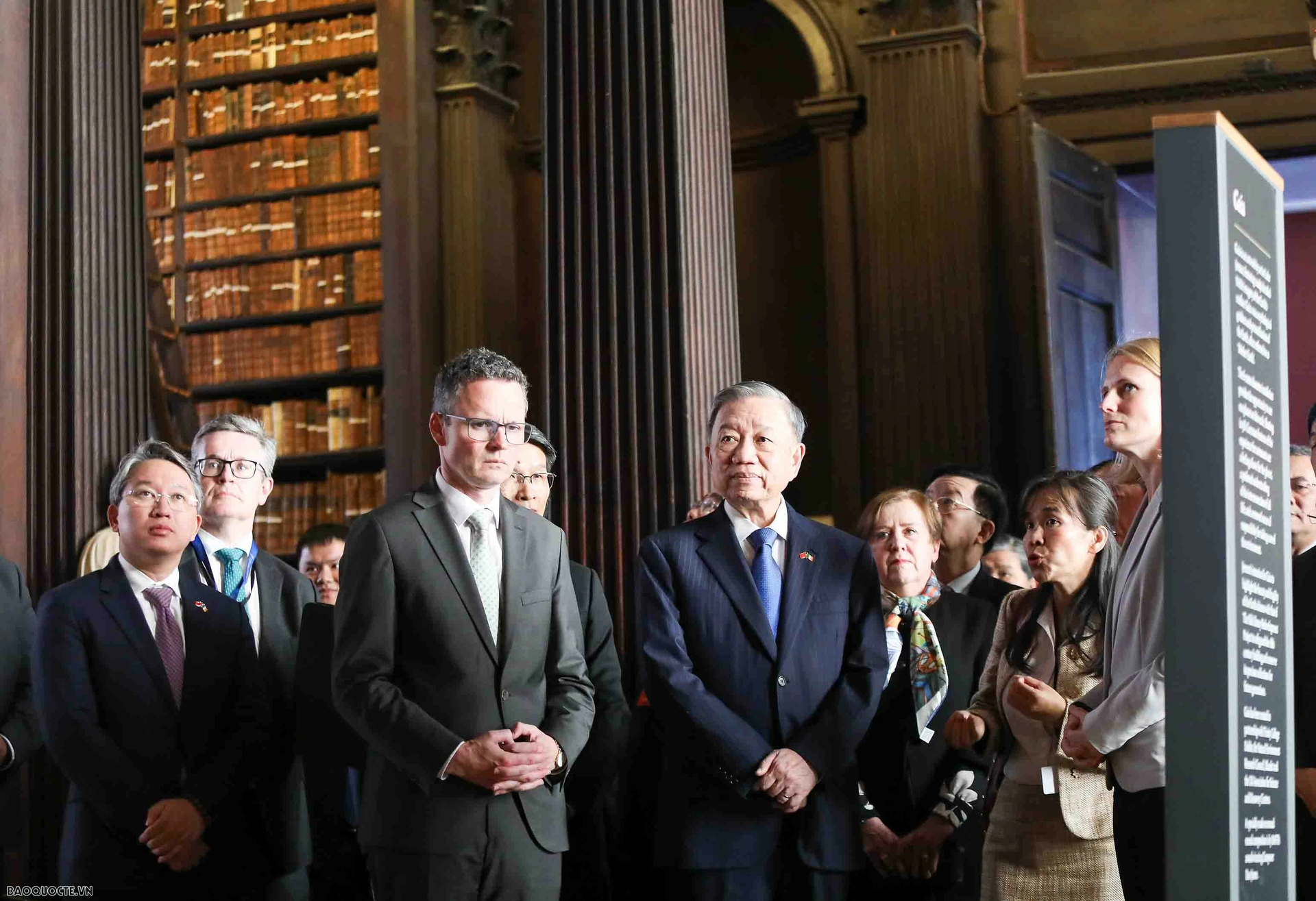 Đại sứ Ní Fhalluin: Tôi rất vinh dự được tháp tùng Tổng Bí thư Tô Lâm trong chuyến thăm Ireland vừa qua. Đây thực sự là một chuyến thăm đặc biệt, tạo động lực to lớn cho quan hệ song phương. Chuyến thăm đã thành công tốt đẹp, không chỉ mang lại nhiều kết quả thiết thực mà còn thể hiện tình cảm nồng ấm giữa hai nước. Đây cũng là chuyến thăm đáp lễ sau chuyến thăm Việt Nam của Tổng thống Michael D. Higgins vào năm 2016. Tôi biết rằng Tổng thống Higgins rất coi trọng việc đón tiếp Tổng Bí thư Tô Lâm, thay mặt nhân dân và nhà nước Ireland.