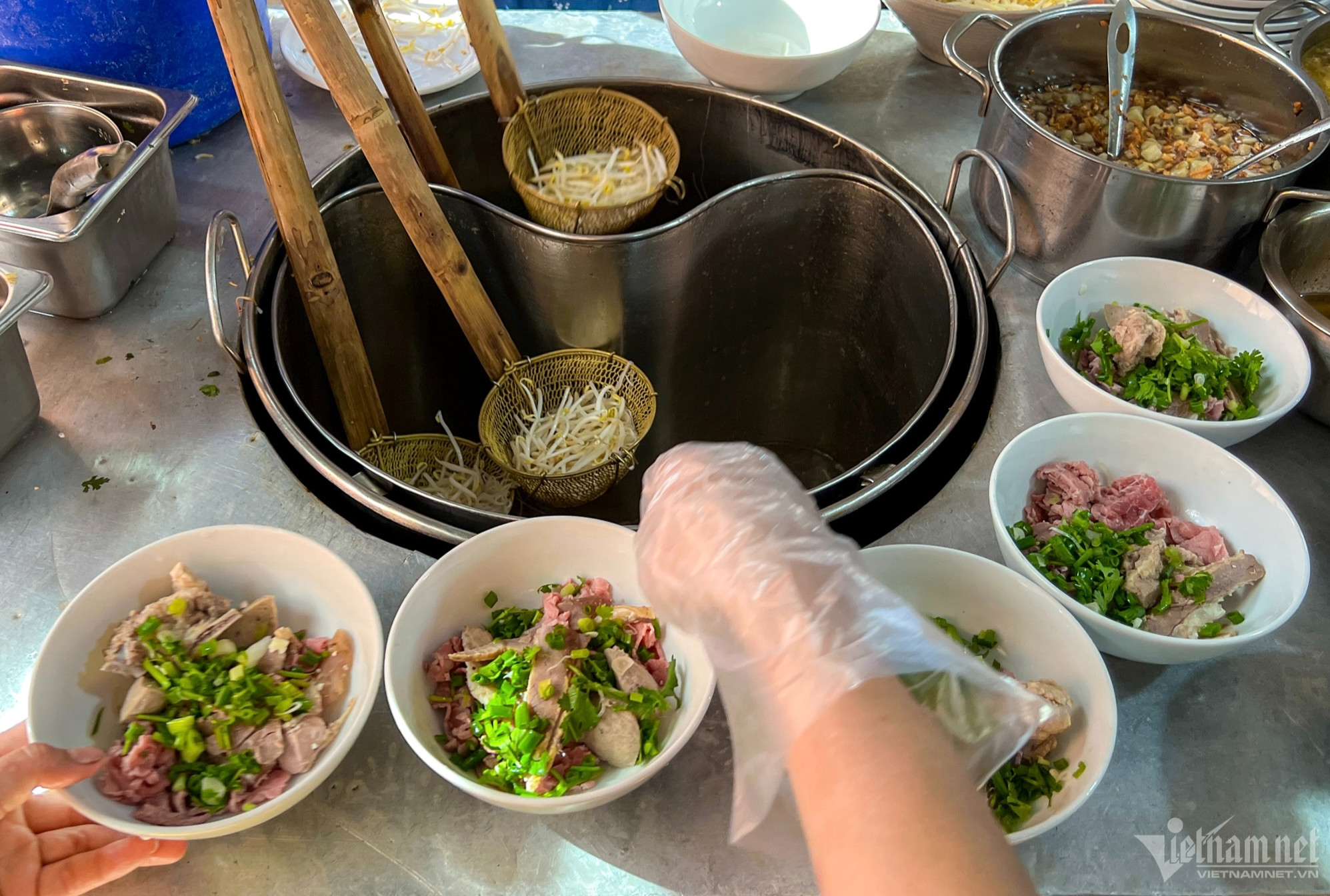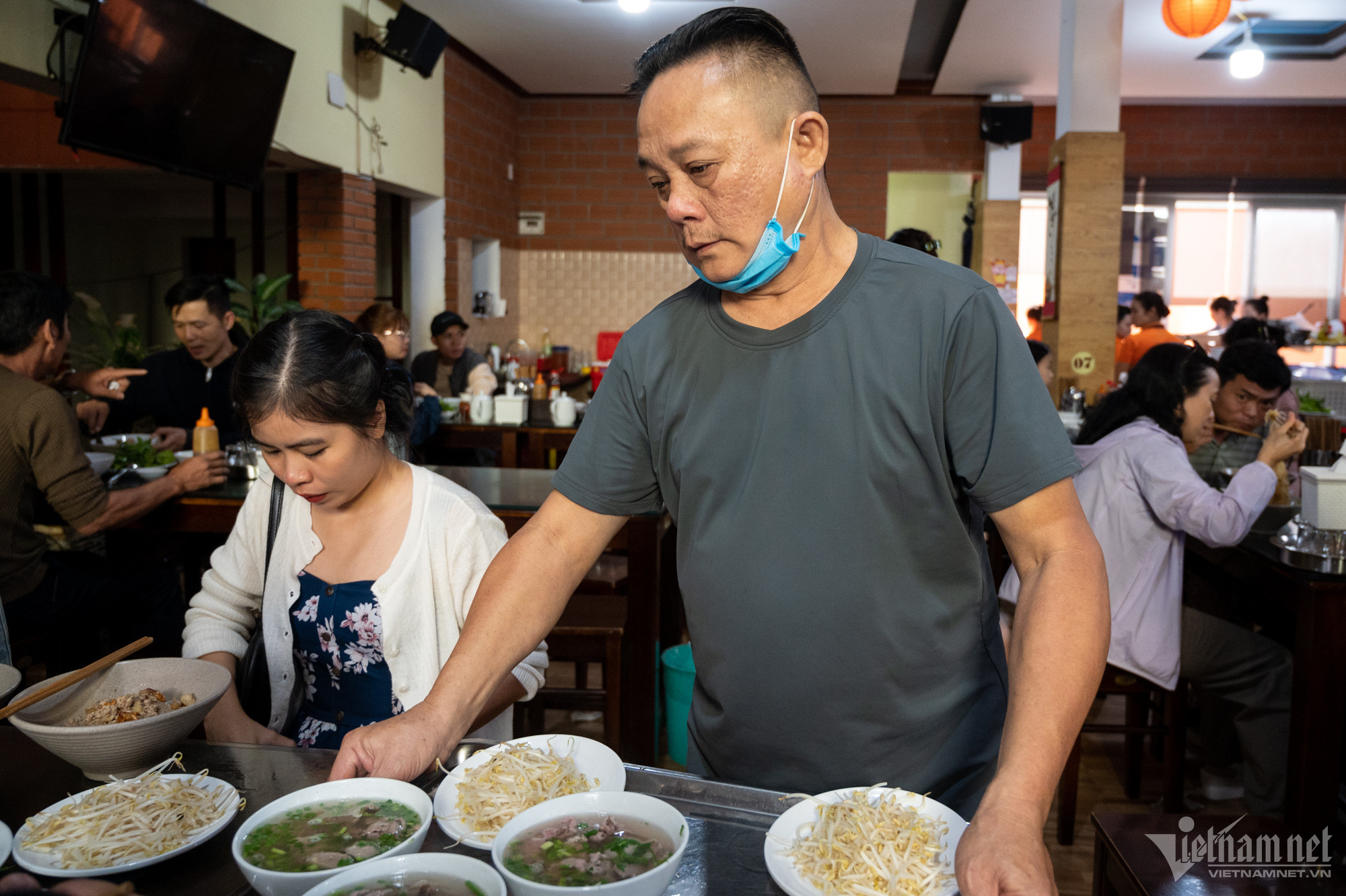 Từ sáng sớm, quán đã chật kín khách ăn. Hơn 20 nhân viên luôn chân luôn tay, liên tục phục vụ khách vào ra.