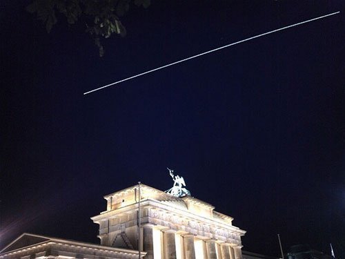 | Vệt sáng dài trên bầu trời đêm chính là đường di chuyển của ISS. Ảnh: NASA. |