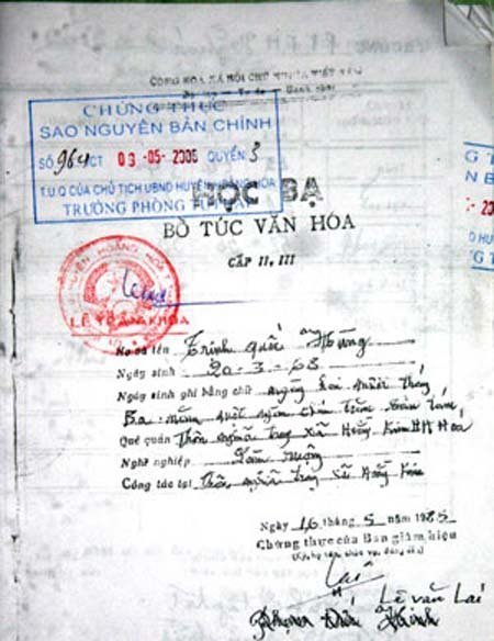 Khi thi xong tốt nghiệp, vì điều kiện kinh tế gia đình nên ông H. phải đi làm ăn xa không quan tâm đến hồ sơ học bạ và bằng cấp.