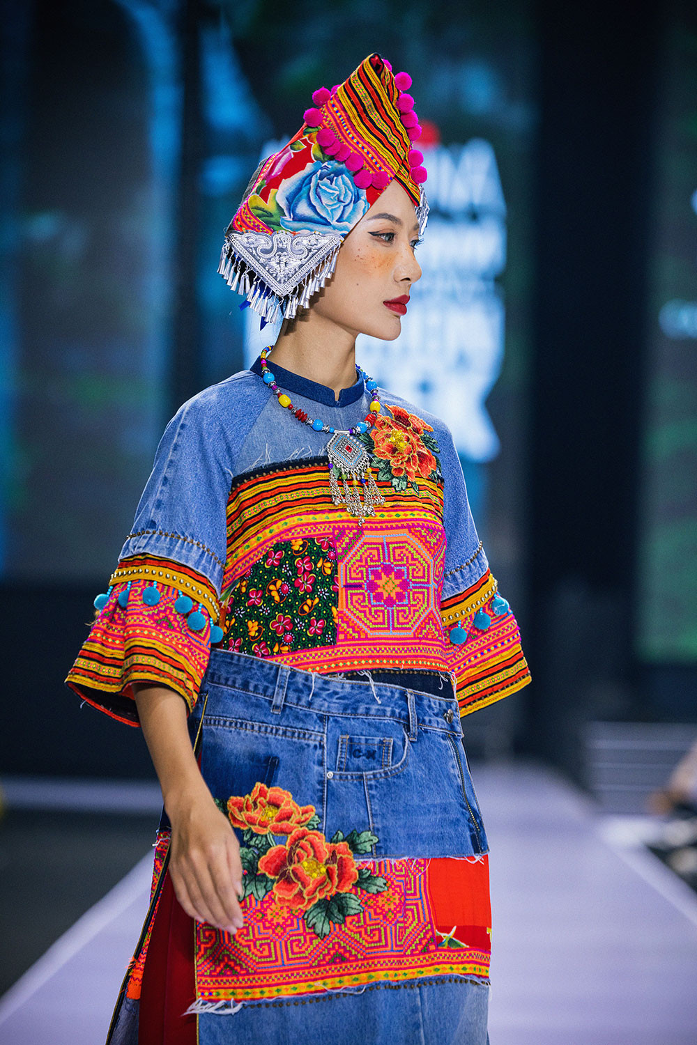 BST có các miếng thổ cẩm hàng trăm năm tuổi được tìm kiếm, tái chế từ những chiếc áo cổ và đưa vào phối với chất liệu đương đại, đón đầu xu hướng năm 2023. Sự kết hợp này tạo nên sức sống mới cho chất liệu truyền thống.