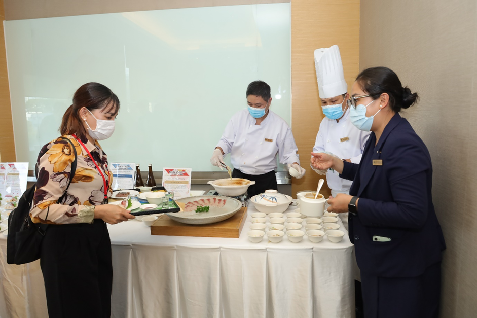 Sau buổi hội thảo, khách mời sẽ được trực tiếp tham gia vào buổi nếm thử thực đơn món ăn Nhật Bản đẳng cấp do chính tay đầu bếp Midou Masashi sáng tạo bằng việc sử dụng các nguyên liệu tươi ngon, chuẩn Nhật Bản. Thưởng thức ẩm thực Nhật trọn vẹn với nguyên liệu tươi ngon như cá đuôi vàng, sò điệp, bò wagyu tạo nên sự thăng hoa trong hương vị và đánh thức mọi giác quan.