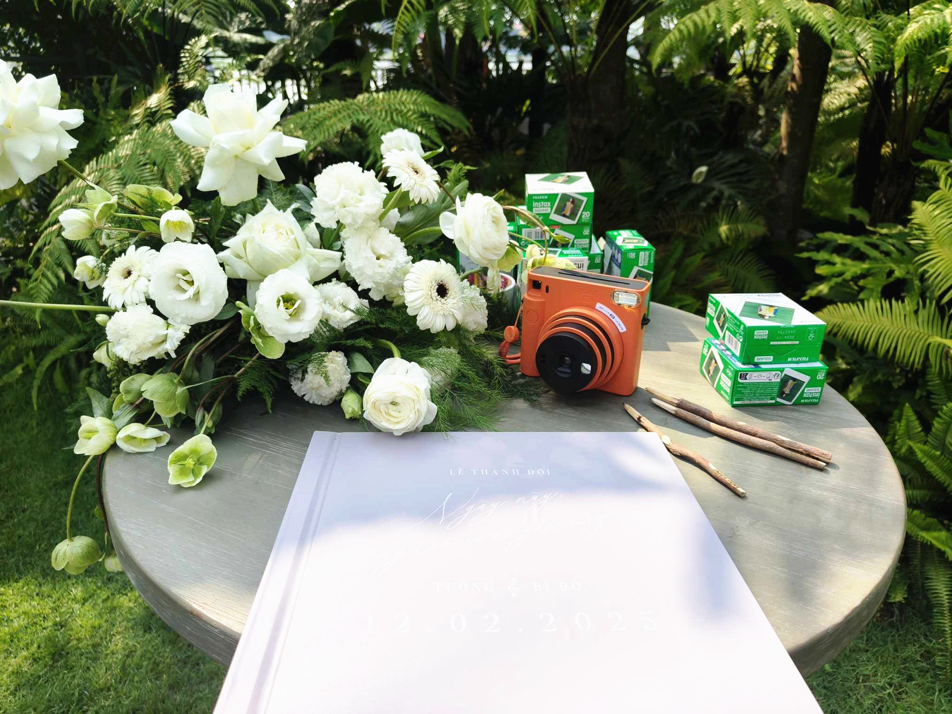 Toàn bộ phần trang trí của lễ thành đôi theo ý tưởng của ca sĩ Vũ Cát Tường. Cô chọn tông màu chủ đạo xanh lá cây và trắng với mong muốn sự kiện trọng đại của đôi lứa gần gũi thiên nhiên nhất có thể.