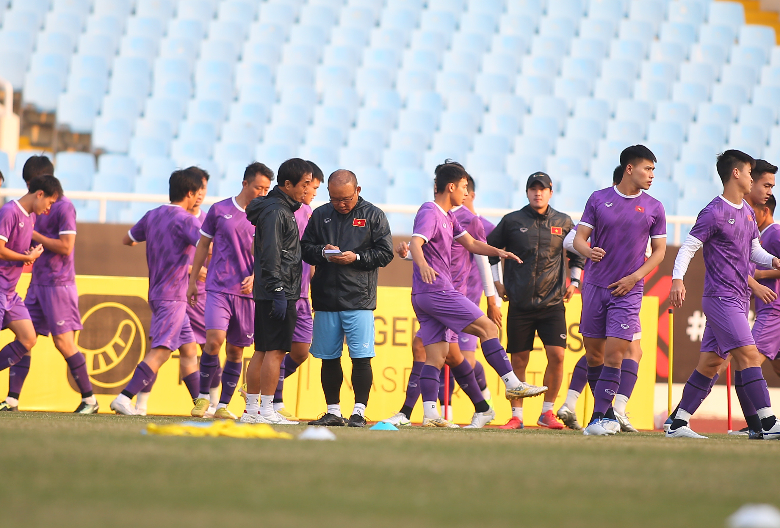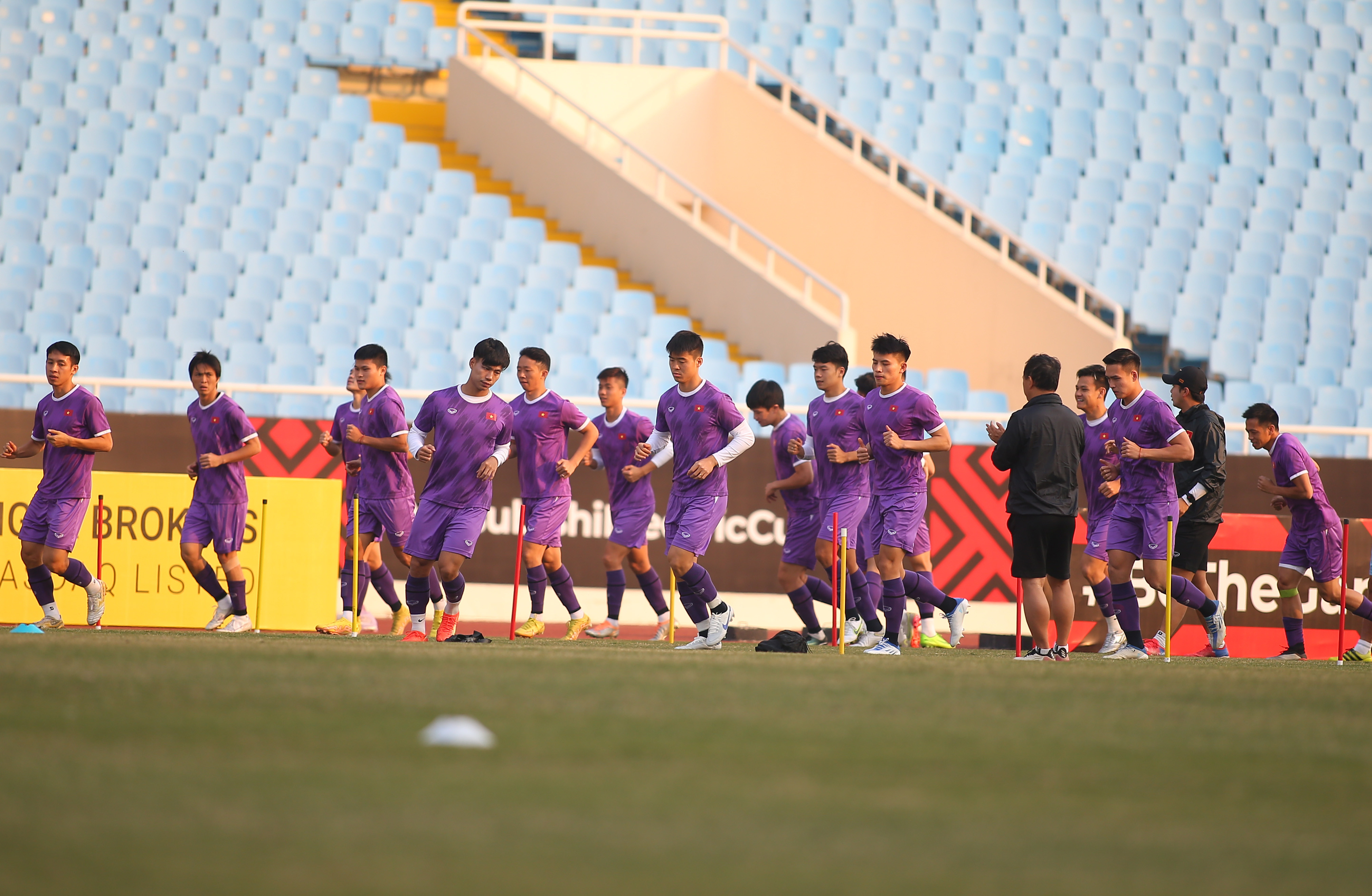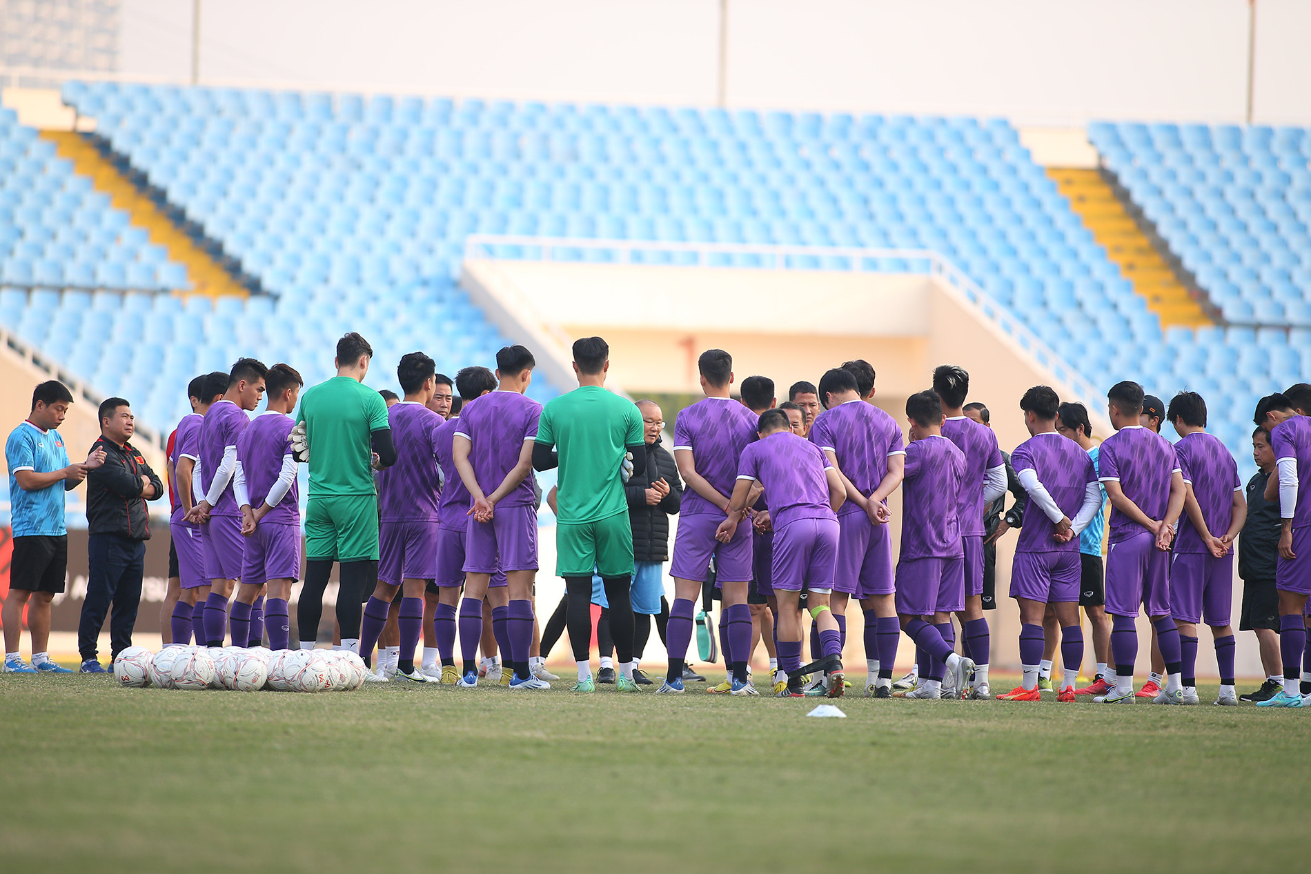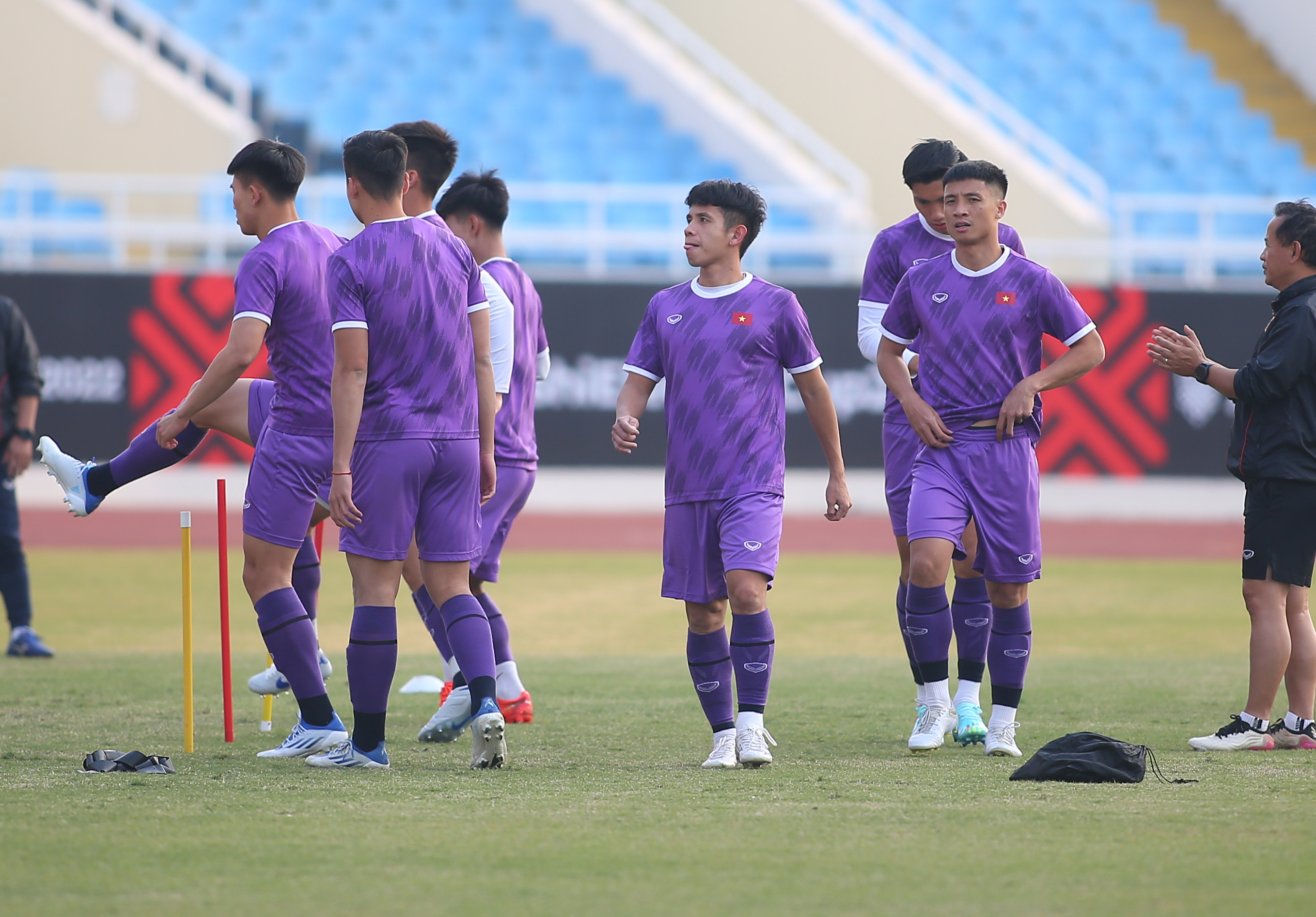 Trở về nước sau trận thắng Lào, Quang Hải không xuất hiện ở buổi tập của tuyển Việt Nam ngày 23/12 do bị căng cơ đùi. Chiều nay, số 19 trở lại tập luyện cùng các đồng đội, chuẩn bị cho trận gặp Malaysia, lượt thứ 2 bảng B, AFF Cup 2022Tuyển Việt Nam có 5 buổi tập chuẩn bị cho trận đấu mang tính then chốt tại bảng B. Văn Hậu rất tự tin khi đối đầu với Malaysia. Cầu thủ CLB Công an Hà Nội đang có phong độ rất cao, đóng góp một bàn thắng trong trận thắng Lào 6-0HLV Park Hang Seo trao đổi khá lâu với các học trò trước buổi tậpThầy Park hỏi thăm tình hình sức khỏe của Bùi Tiến Dũng. Trung vệ này mới trở lại sau khi mắc Covid-19Tâm điểm của buổi tập là sự xuất hiện của Quang Hải. Dù có mặt trên sân nhưng số 19 phải tập riêng với bác sĩDù chấn thương căng cơ đùi không nghiêm trong nhưng khả năng ra sân của Quang Hải ở trận gặp Malaysia vẫn bỏ ngỏQuang Hải nhận được sự "chăm sóc" đặc biệt. Anh là cầu thủ rất có duyên ghi bàn vào lưới của MalaysiaTrong khi đó Hồng Duy tập luyện bình thường cùng các đồng độiTuyển Việt Nam có sự khởi đầu thuận lợi nhưng phía trước là một thử thách lớn mang tên MalaysiaHLV Park Hang Seo tính toán kỹ về nhân sự, lối chơi trước trận đấu quan trọng nhất ở vòng bảng.