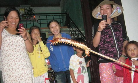 | Người dân háo hức kéo đến xem con rết 'khổng lồ' (Ảnh: Dân trí) |