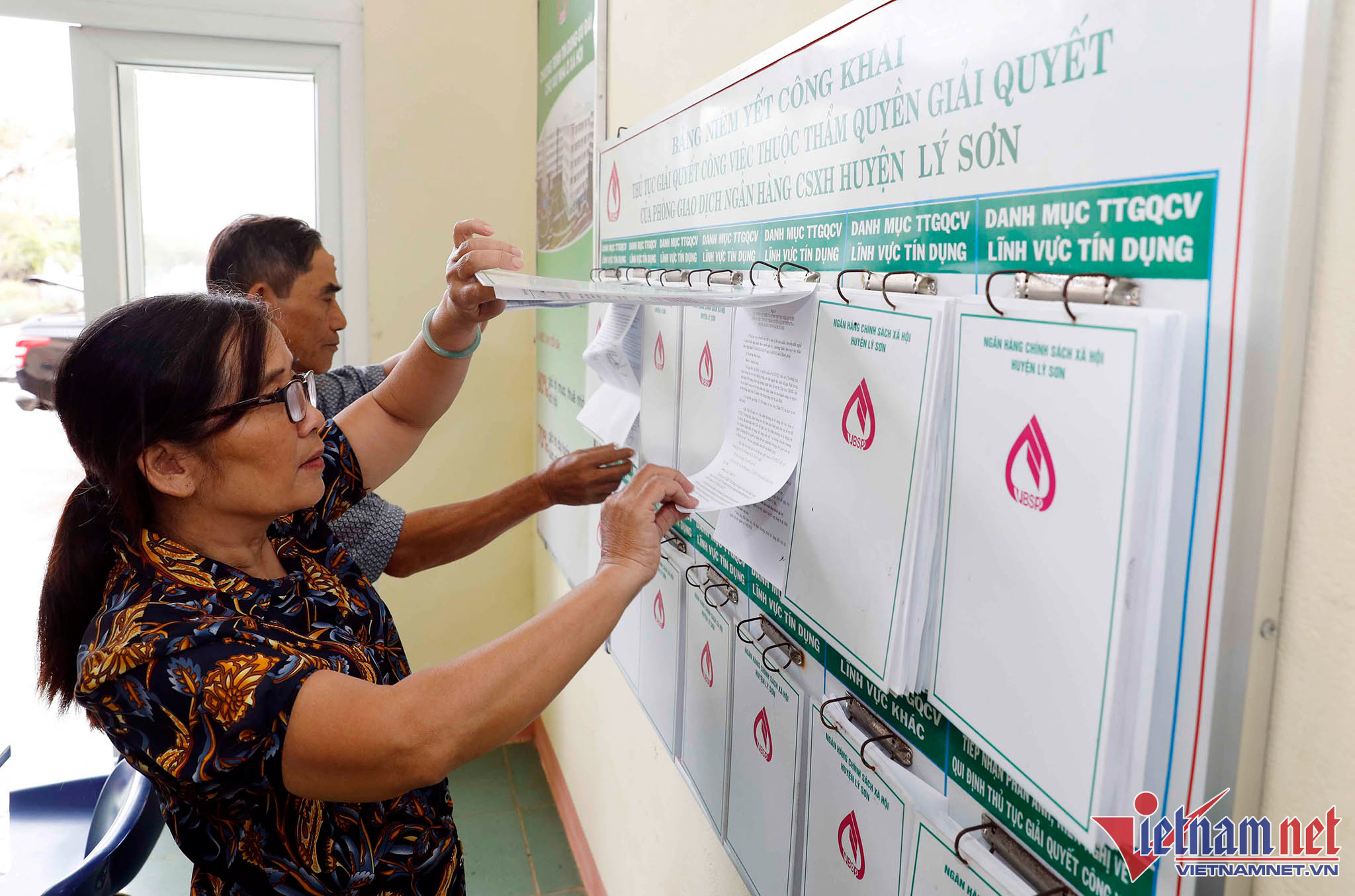 Người dân trên đảo Lý Sơn, Quảng Ngãi tham khảo các chương trình cho vay được niêm yết công khai tại điểm giao dịch. Nhiều hộ dân trên đảo Lý Sơn được vay vốn mua sắm ngư cụ vươn khơi bám biển.Cơ sở chế biến cá Trần Thị Phượng vay vốn giải quyết việc làm đầu tư thu mua, chế biến chả cá thu hút nhiều lao động.Gia đình bà Mai Thị Nhiều vay vốn ưu đãi đầu tư cải tạo đất trồng tỏi mỗi năm thu hàng chục triệu đồng. Có thêm vốn vay chương trình hộ thoát nghèo, gia đình anh Đinh Thành Đô ở thôn Đông An Vĩnh, huyện Lý Sơn có điều kiện cải tạo 4000 m2 vườn trồng hành, tỏi. Cán bộ NHCS huyện Lý Sơn thường xuyên kiểm tra thực tế hộ vay, góp phần đưa tỷ lệ nợ quá hạn nhiều năm là 0%.Cuộc sống bình yên trên đảo Lý Sơn.Nhờ vốn vay chương trình hộ sản xuất kinh doanh vùng khó khăn, gia đình chị Đinh Thị Mỹ Khanh, dân tộc H’rê ở xã Long Môn, huyện Minh Long, Quảng Ngãi có điều kiện đầu tư nuôi trâu, máy xay xát gạo, gia đình có việc làm ổn định.Gia đình anh Nguyễn Đức Hiền ở xã Hành Nhân, huyện Nghĩa Hành vay chương trình giải quyết việc làm đầu tư cải tạo vườn đồi trồng hồ tiêu, cây có múi cho hiệu quả tốt.Chương trình cho vay nhà ở xã hội theo Nghị định số 100/2015/NĐ-CP của Chính phủ đã giúp gia đình chị Nguyễn Thị Tài ở thị trấn Chợ Chùa có điều kiện xây được nhà mới khang trang, tránh được nước ngập mùa lũ. Được vay 100 triệu đồng chương trình giải quyết việc làm, gia đình chị Ngô Thị Chuẩn ở thị trấn Chợ Chùa có điều kiện mua sắm máy may gia công quần áo, thu hút 10 lao động. Làm thủ tục cho hộ nghèo và đối tượng chính sách vay vốn tại điểm giao dịch xã Hành Minh, huyện Nghĩa Hành, Quảng Ngãi. Được vay vốn chương trình hộ cận nghèo, gia đình anh Đinh Văn Cu, dân tộc H’rê ở xã Thanh An, huyện Minh Long có điều kiện trồng rừng, nuôi gia súc, gia đình thoát nghèo bền vữngGia đình chị Lê Thị Nhàn ở huyện Lý Sơn vay vốn giải quyết việc làm đầu tư mua nguyên liệu, máy móc chế biến cá, gia đình có việc làm, thu nhập ổn định.