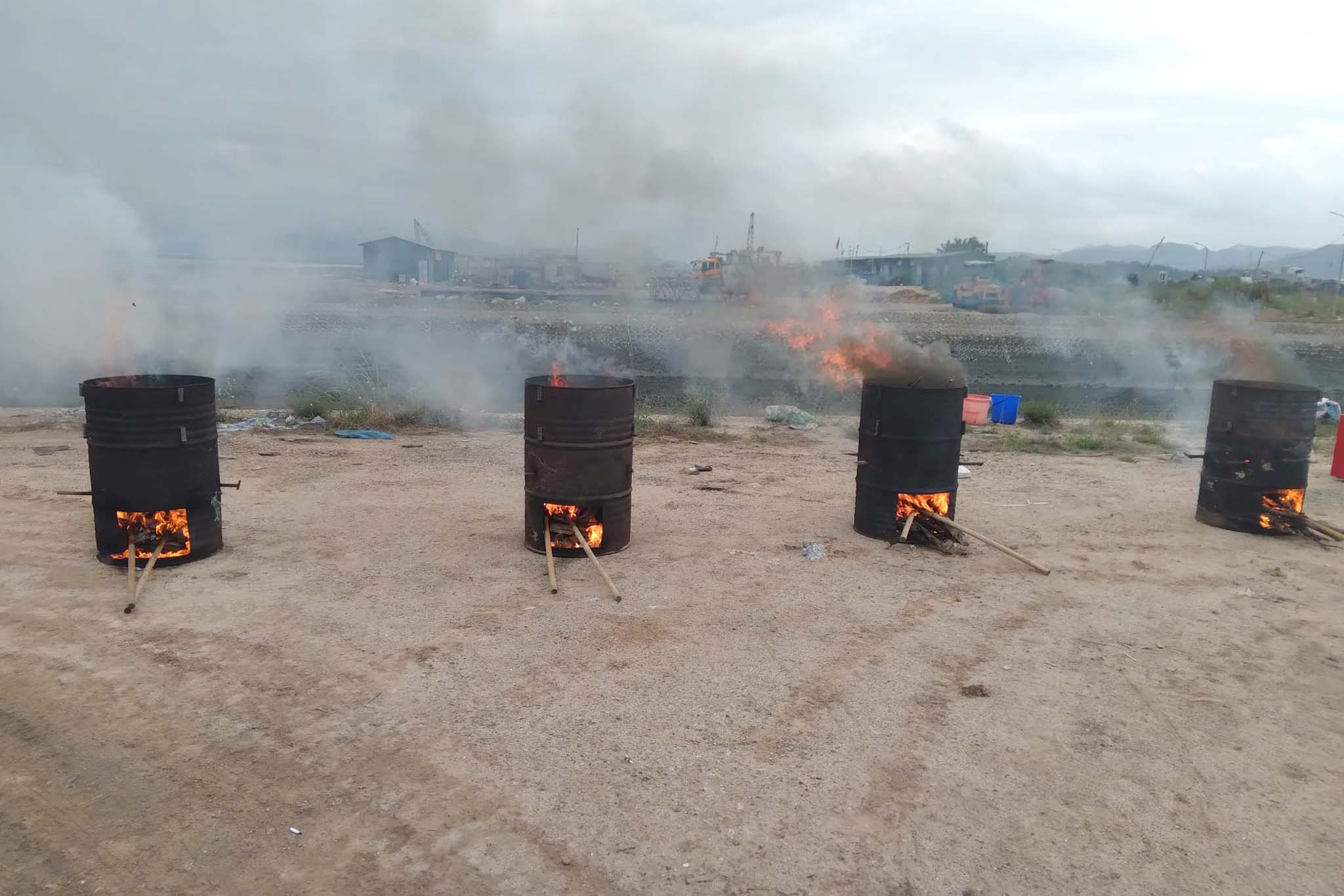 70 bánh heroin được tiêu huỷ bằng cách đốt cháy hoàn toàn