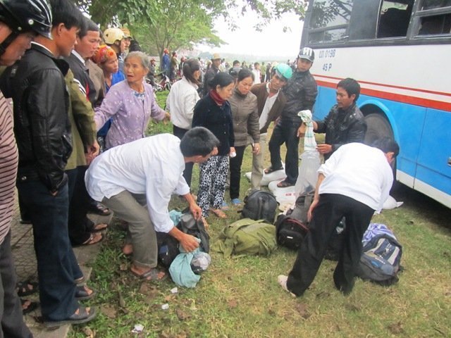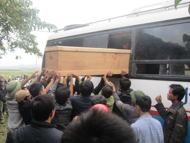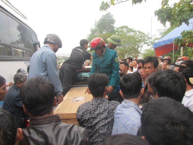 Có mặt trước bãi đất trống ở cổng Nghĩa trang liệt sĩ Nam Đàn (xóm Trung Đông, xã Vân Diên), chúng tôi chứng kiến cảnh tượng tang thương với hàng trăm người dân đang vây chặt bên chiếc xe Lào BKS UN 0198 để đưa các thi thể ra khỏi xe.
